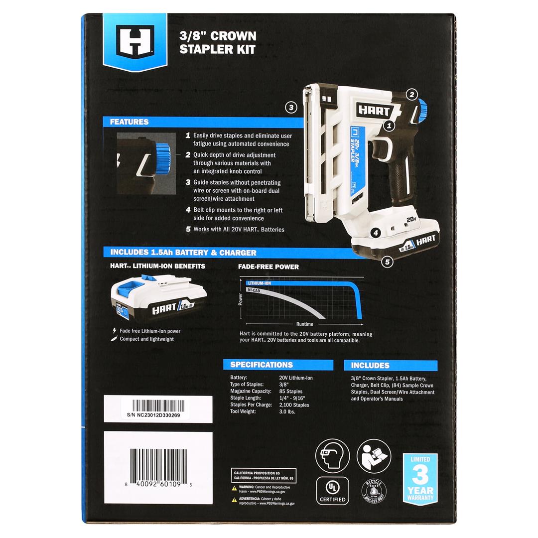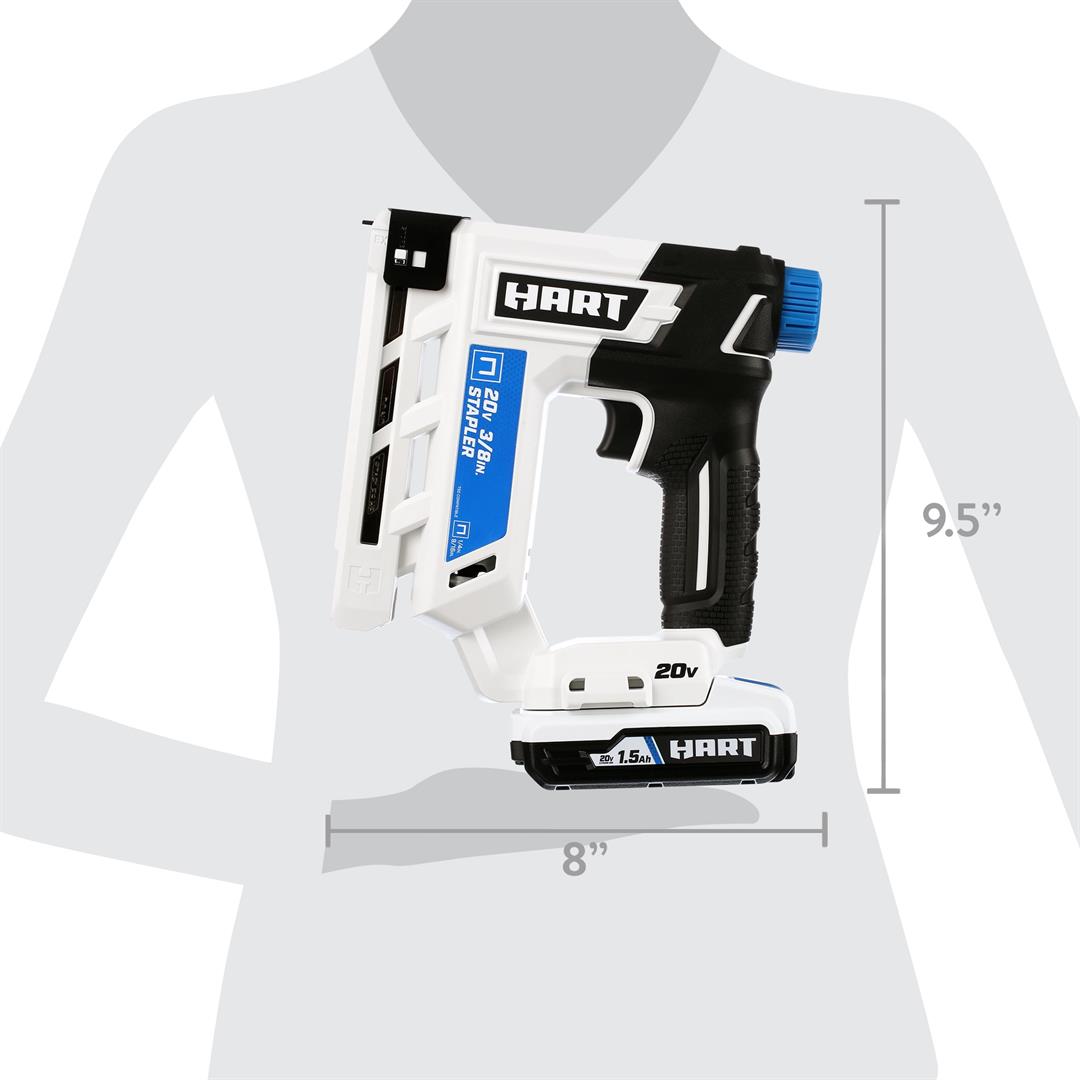 HART 20-Volt 3/8 Inch Crown Staple Gun Kit (1) 20-Volt 1.5Ah Lithium-Ion Battery