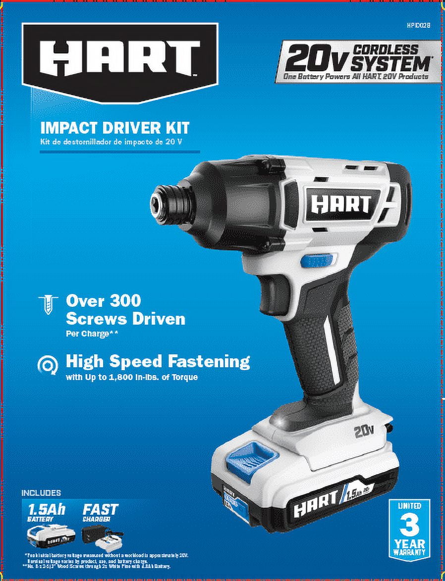 HART 20-Volt Cordless Impact Driver Kit, (1) 1.5Ah Lithium-Ion Battery, Hex Chuck, Gen 2