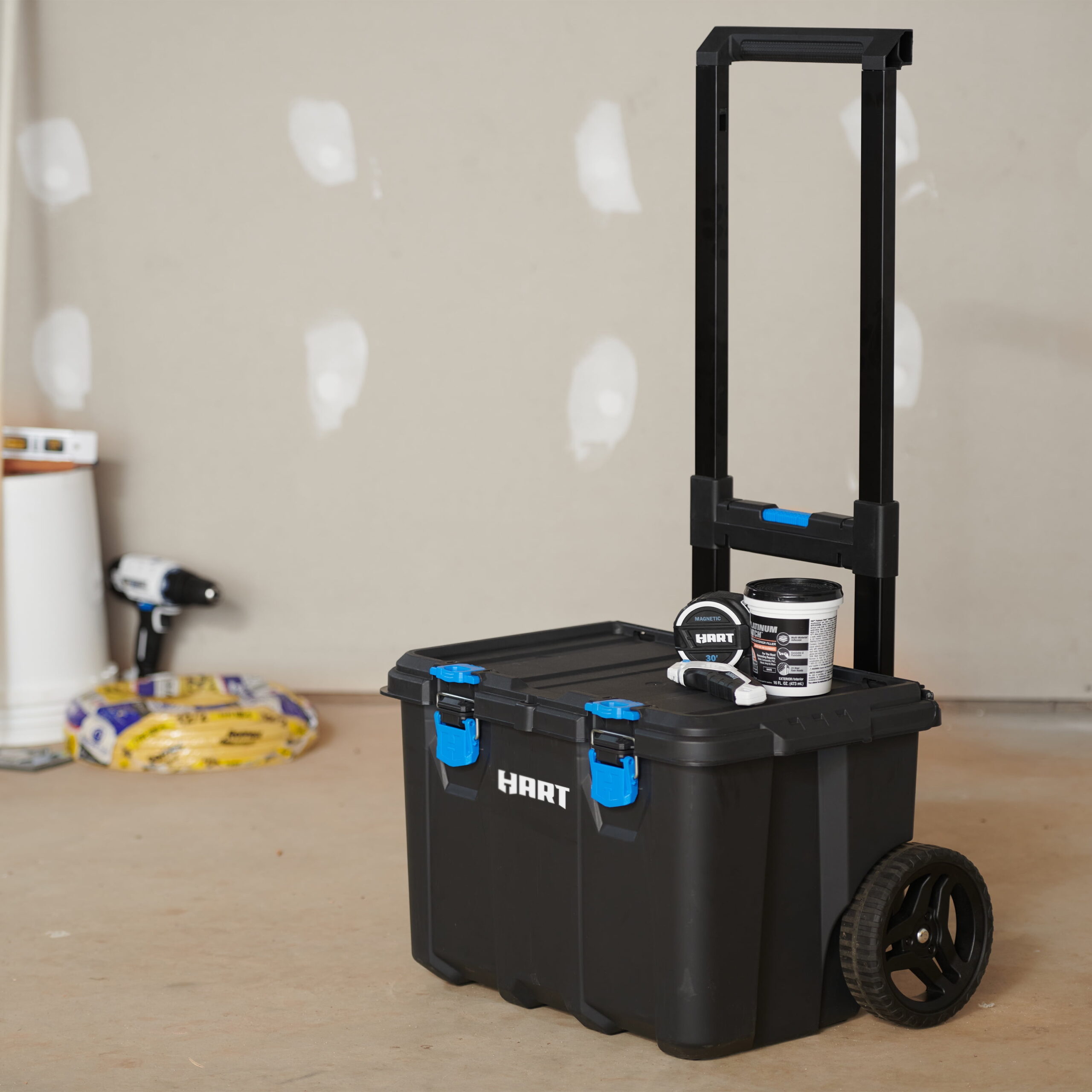 Pack, Stack and Go! Ready to roll! If you want all your Tools, DIY or hobby kits and accessories in one place, the Hart Stack system is a great option for you. Offering the ultimate in-cross system connectivity, this lockable system includes 3 tool storage essentials: a mobile cart, toolbox and organizer. The lower cart with telescopic handle and 7 inch wheels is great to move your tools from place to place, the middle toolbox offers versatile storage options, and the upper organizer keeps smaller items in a perfect order. Combine all storage units with a very little effort into one system or customize according to your requirements the choice is yours. Need the cart plus organizer today? Easy. Need all your gear at once, just pack, stack and youre ready to take on your next project! The Hart Stack System has inter-changeable trays that can be used across the cart and toolbox. Lower cart dimensions are 21 ” wide by 16.2 deep by 22.2″ high. The middle box in this stack is 21 ” wide by 13.6 ” deep by 10.2 high. The upper organizer box is 21 ” wide by 13.6 ” deep by 4.5 ” high. HART Stack System, Mobile Tool Storage and Organization, Black Features: The ultimate in-cross system connectivity for DIYers, crafters and hobbyists Interlocking modular connectivity Mobile System with deep storage compartments Metal telescopic handle 7 durable wheels Side grips for carrying the product Mid-sized toolbox with removable tray also fits to the cart Accessories pocket Lockable (Lock not included) Multiple sized removable bins Transparent polycarbonate lid on organizer Sturdy latches