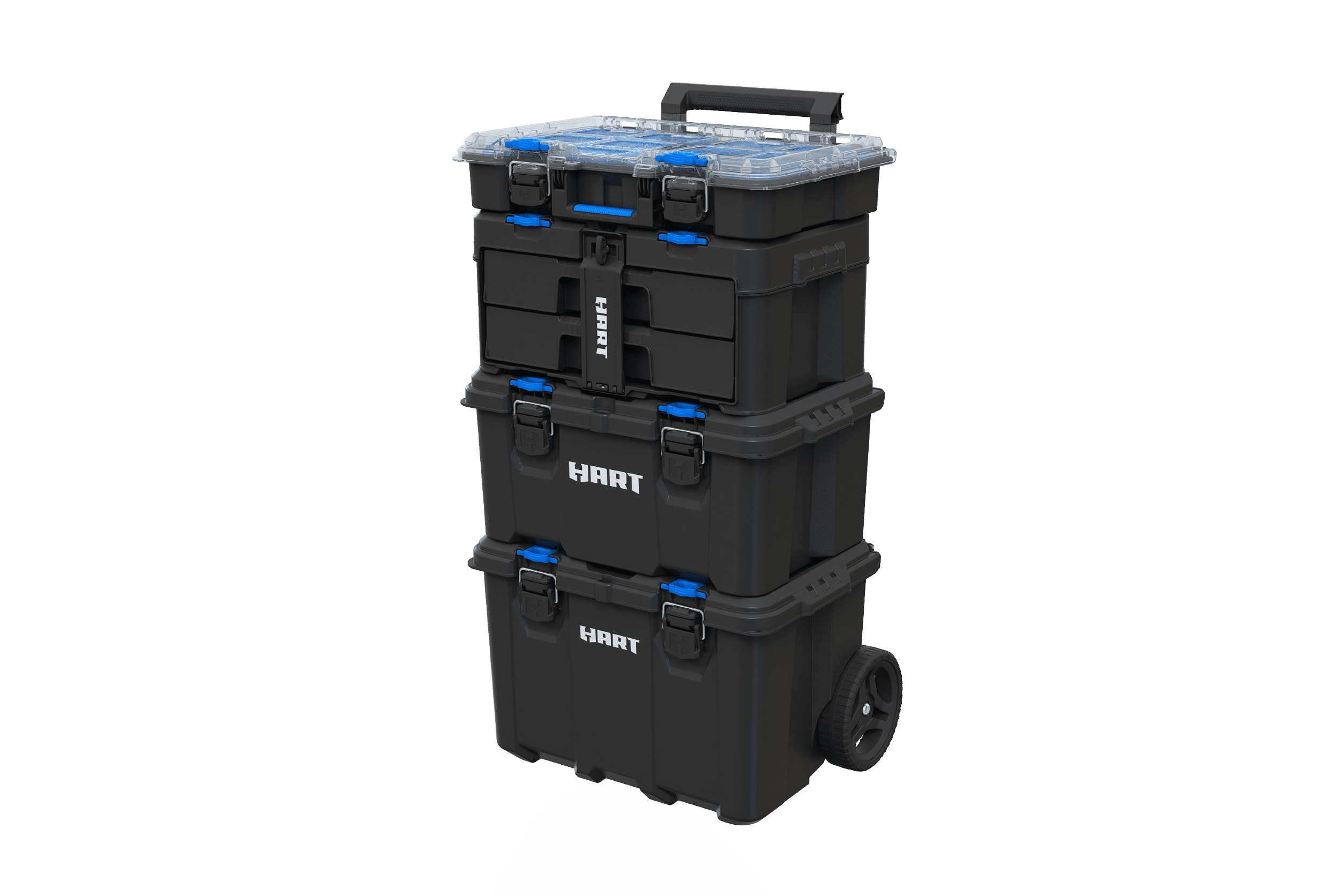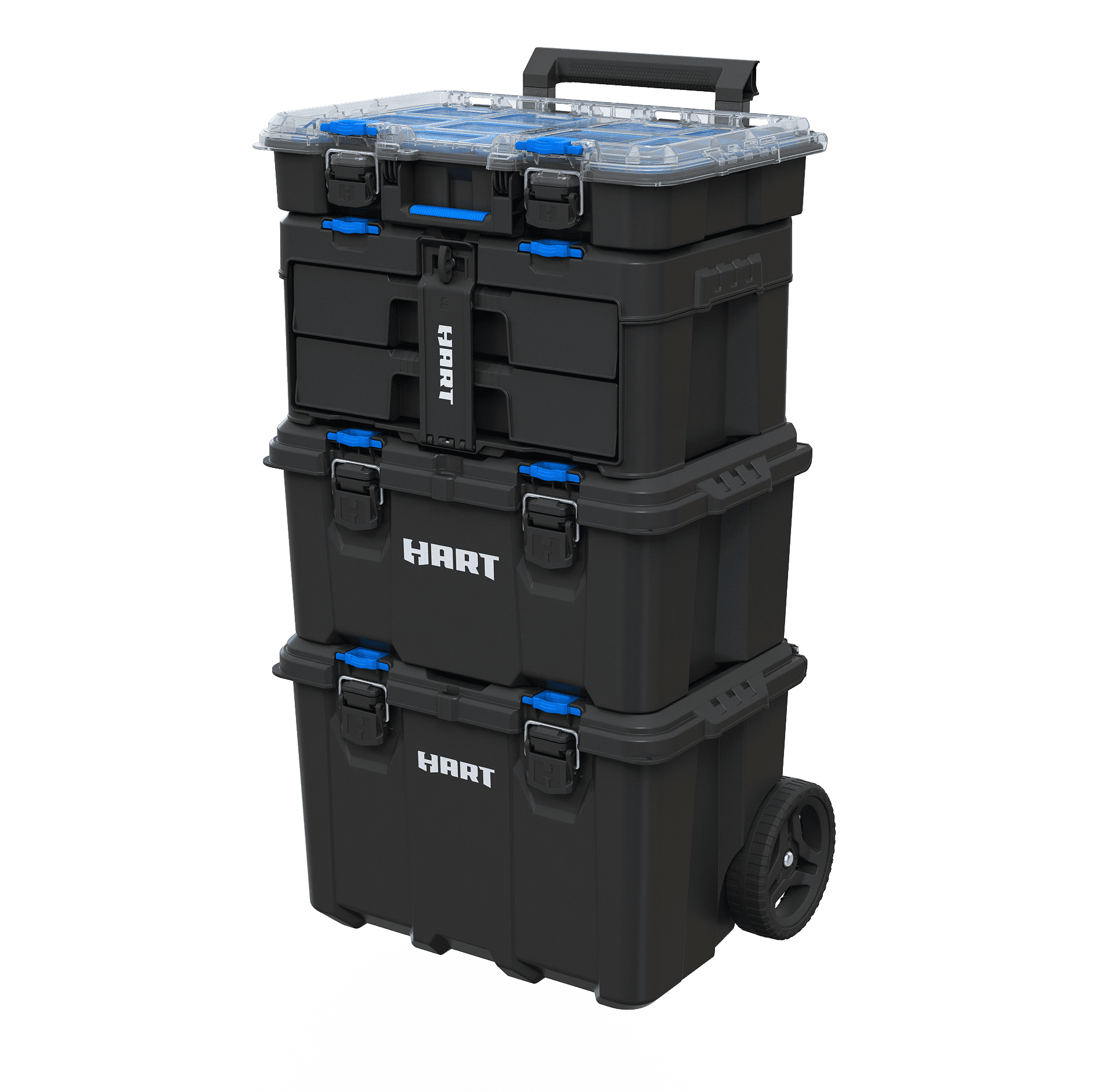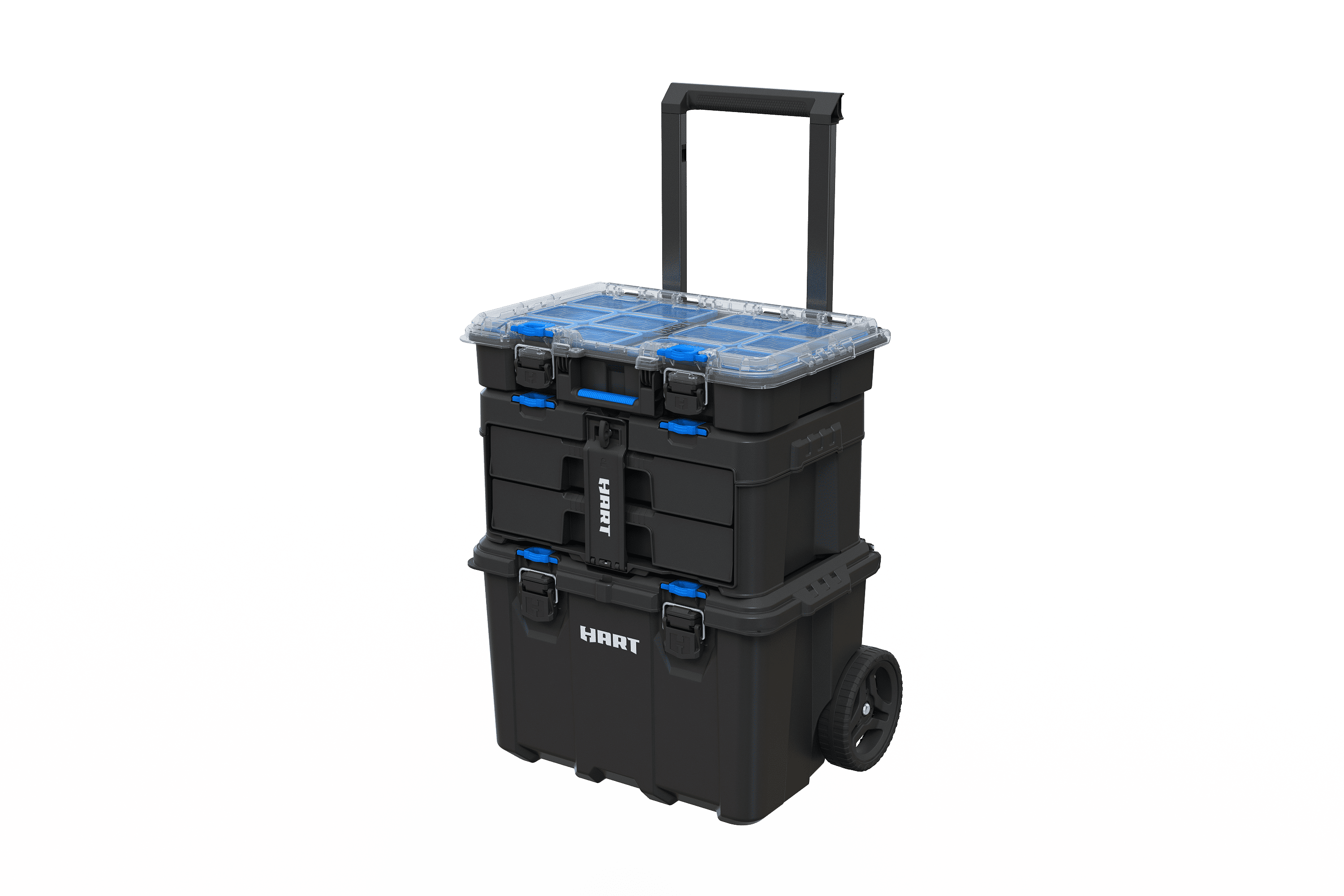 This handy HART STACK 2-Drawer stacks on the HART STACK system modular storage unit and offers a practical storage solution for your hand tools, power tools, and all types of hobbies or home DIY use. It is perfect for keeping your important stuff organized and accessible at the same time. Featuring two drawers that pull out fully, you can put your hands on all your items at a snap. With customizable compartments, you can use this drawer unit to store smaller objects like screwdrivers, wrenches, power tool accessories, screws, fasteners, nuts, bolts, even as well as slightly larger craft materials and small-sized tools. The choice is yours! A drawer lock bar means youll never have to worry about drawers slipping out when youre on the move (lock not included). Made from sturdy, long-lasting plastics this light weight drawer unit is built for frequent use. Youll be pleased to know the HART SYSTEM 2-Drawer Unit is compatible with the HART STACK modular tool box storage system, adding another great accessory to your collection.