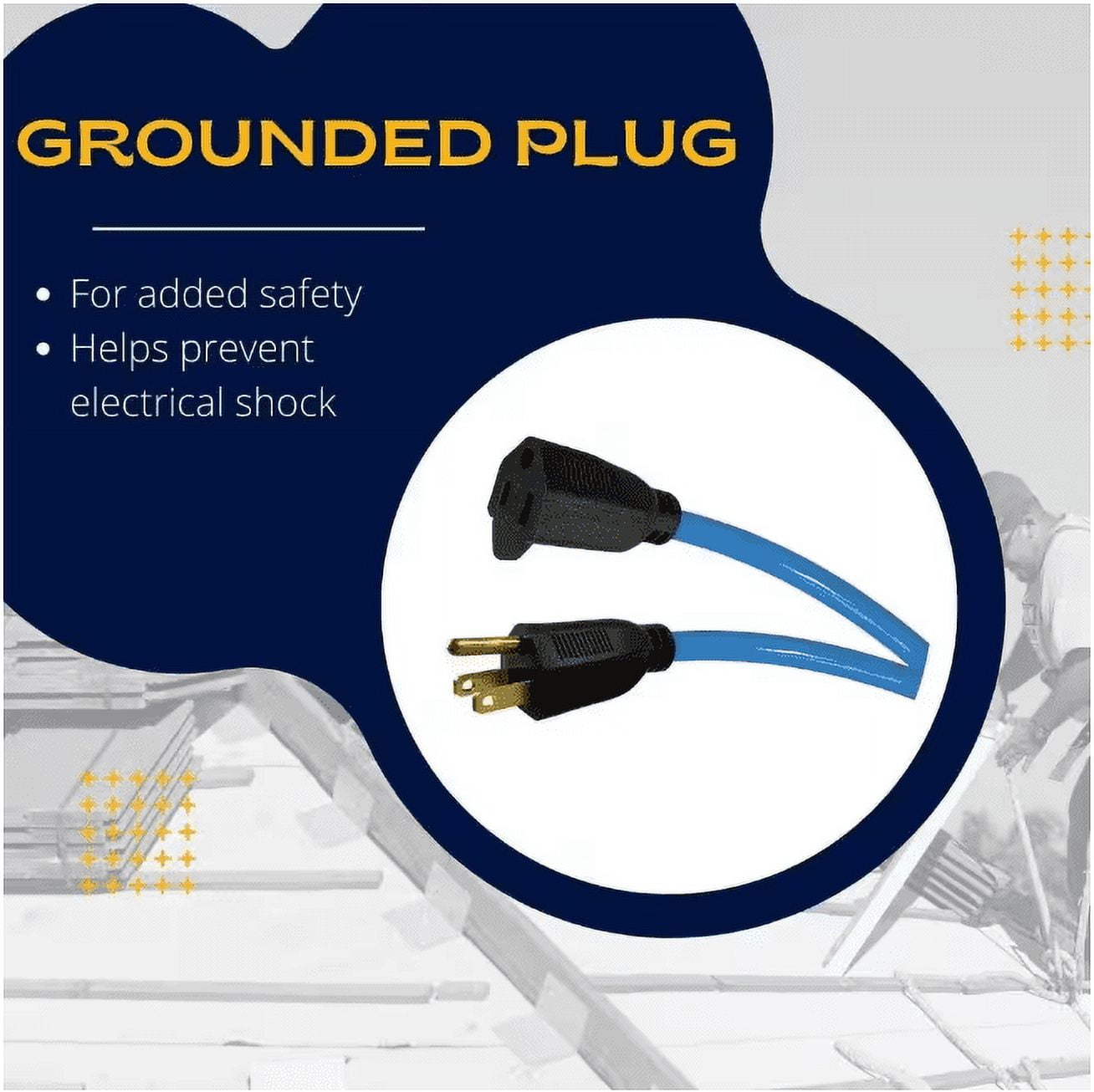 Cold-Weather Resistant Stays flexible and durable even in low temperatures (-58F to 167F), making it ideal for year-round use. 100FT Long Reach Provides extended power access for indoor and outdoor use, reducing the need for multiple cords. 16 AWG, 3-Prong Design Ensures safe and reliable power delivery for tools, appliances, and outdoor lighting. High-Visibility Blue Color Enhances safety by reducing trip hazards and making it easy to spot in any environment. Durable & Weather-Resistant Built to withstand tough conditions for long-lasting performance Versatile Single Outlet Perfect for powering yard equipment, holiday lights, workshops, and job sites. Safety First – UL and ETL Listed. Rated for 10 Amps, 125 Volts, and 1625 Watts