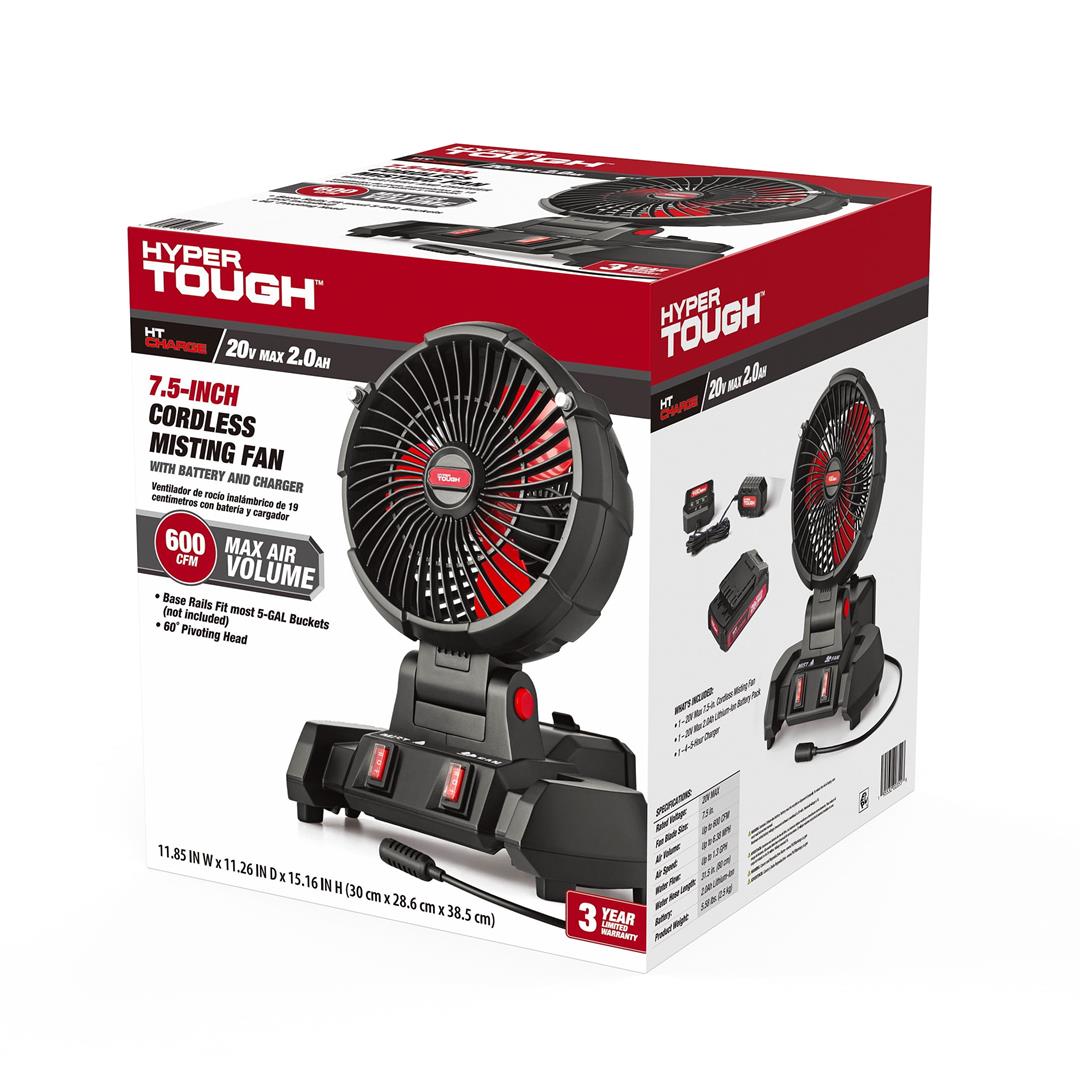 Hyper Tough 20V 7.5 inch Cordless Misting Fan, with 2.0Ah Lithium-Ion Battery Pack and Charger, C1024, New Condition