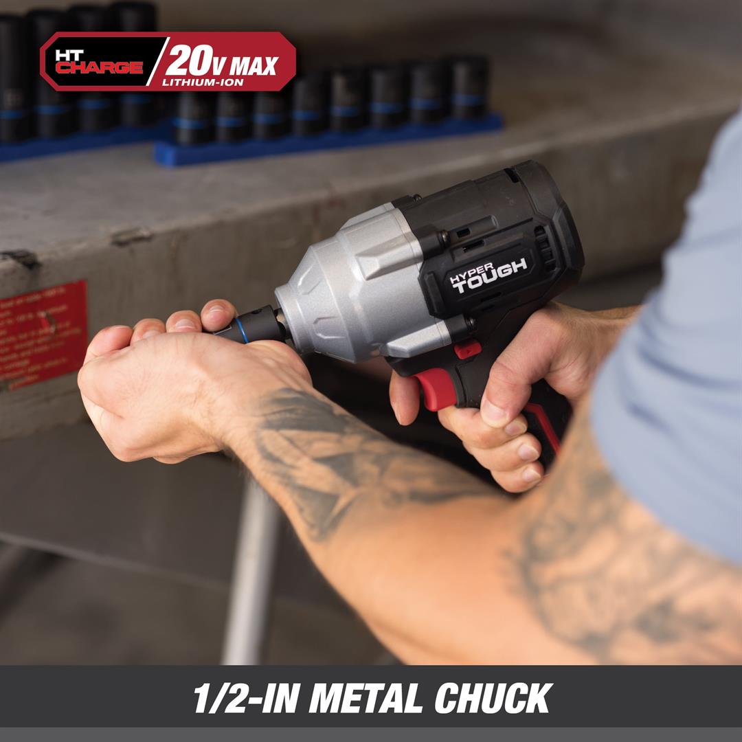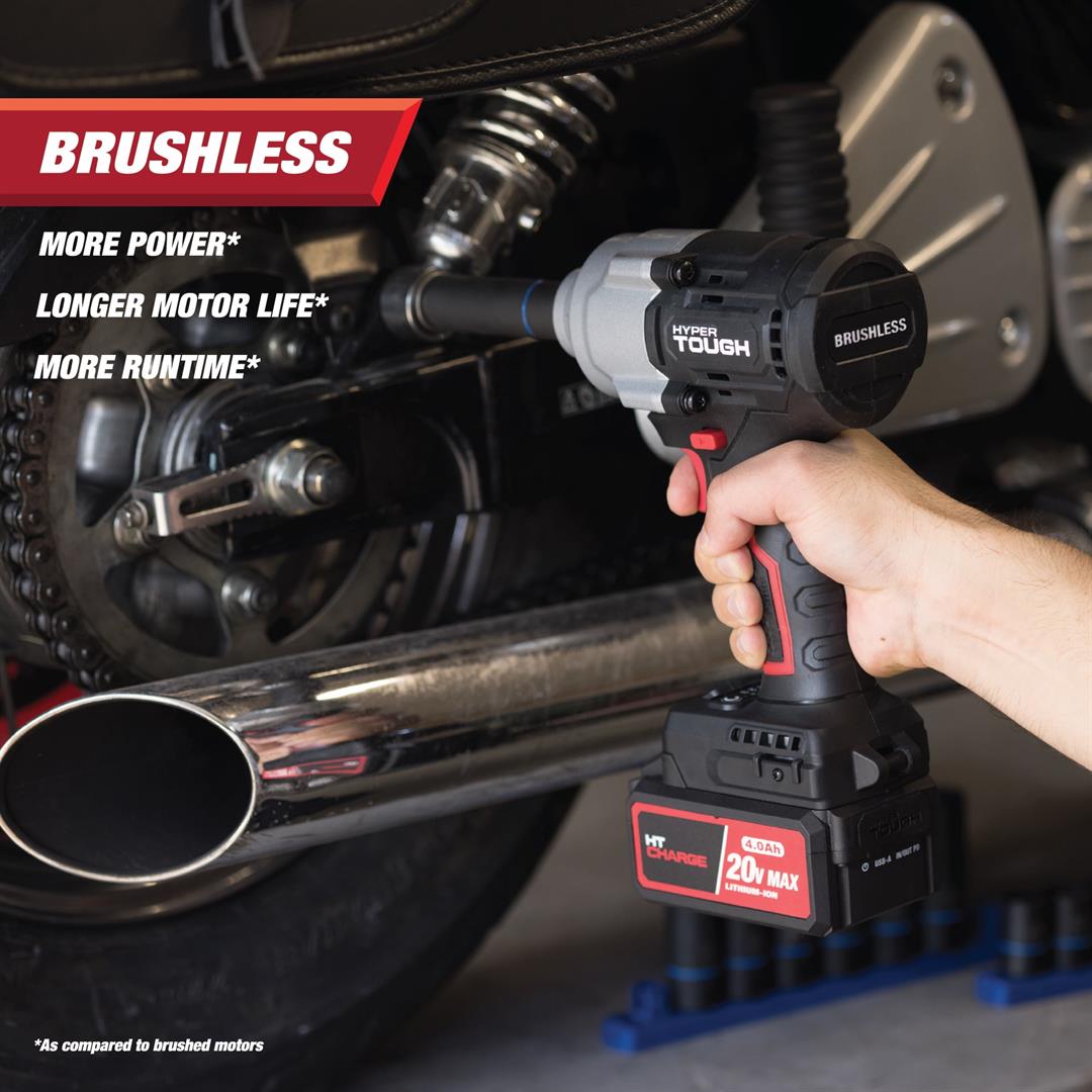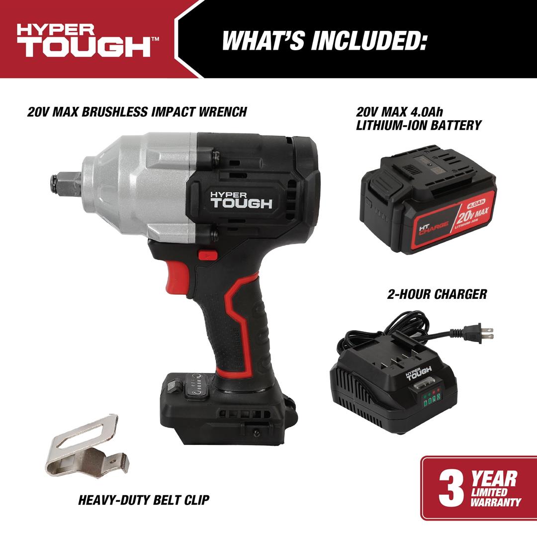 Hyper Tough 20V Max Brushless 1/2-inch Mid-Torque Cordless Impact Wrench with 4.0Ah Lithium-Ion Battery and Charger