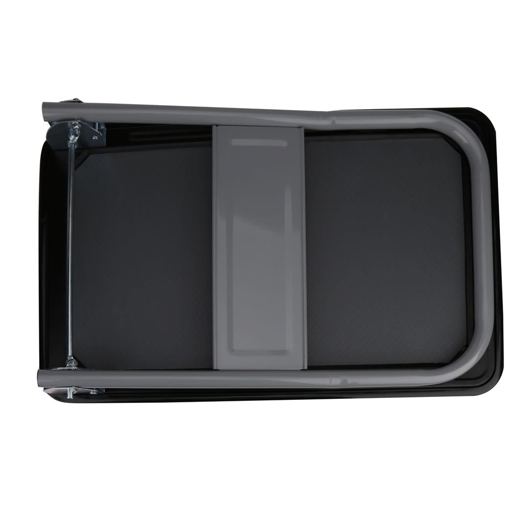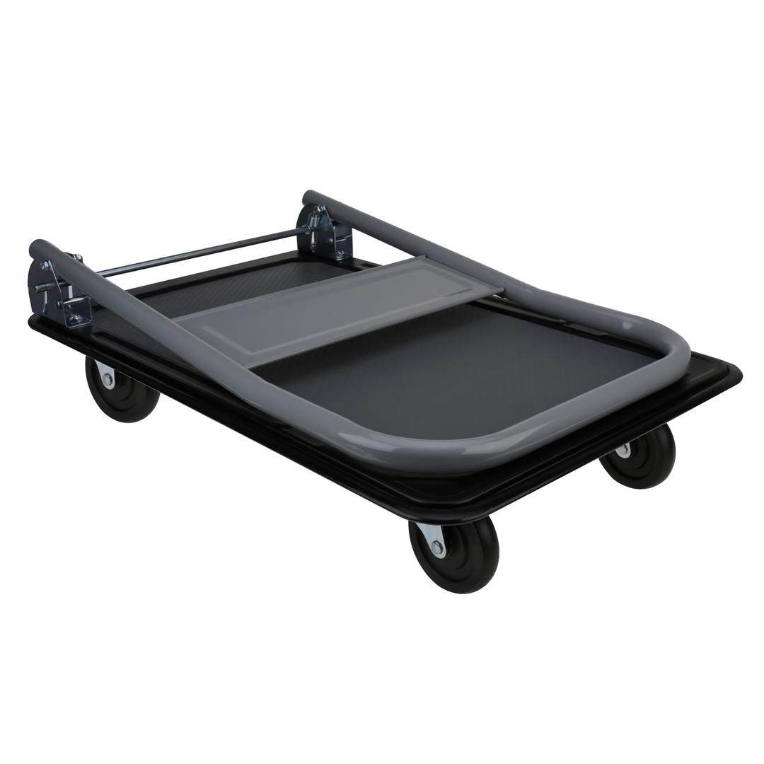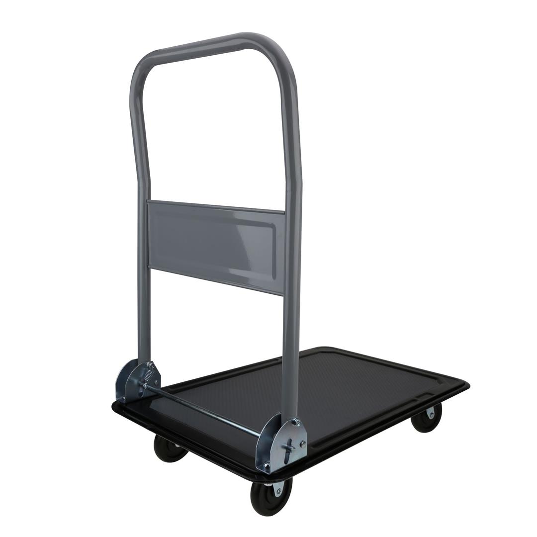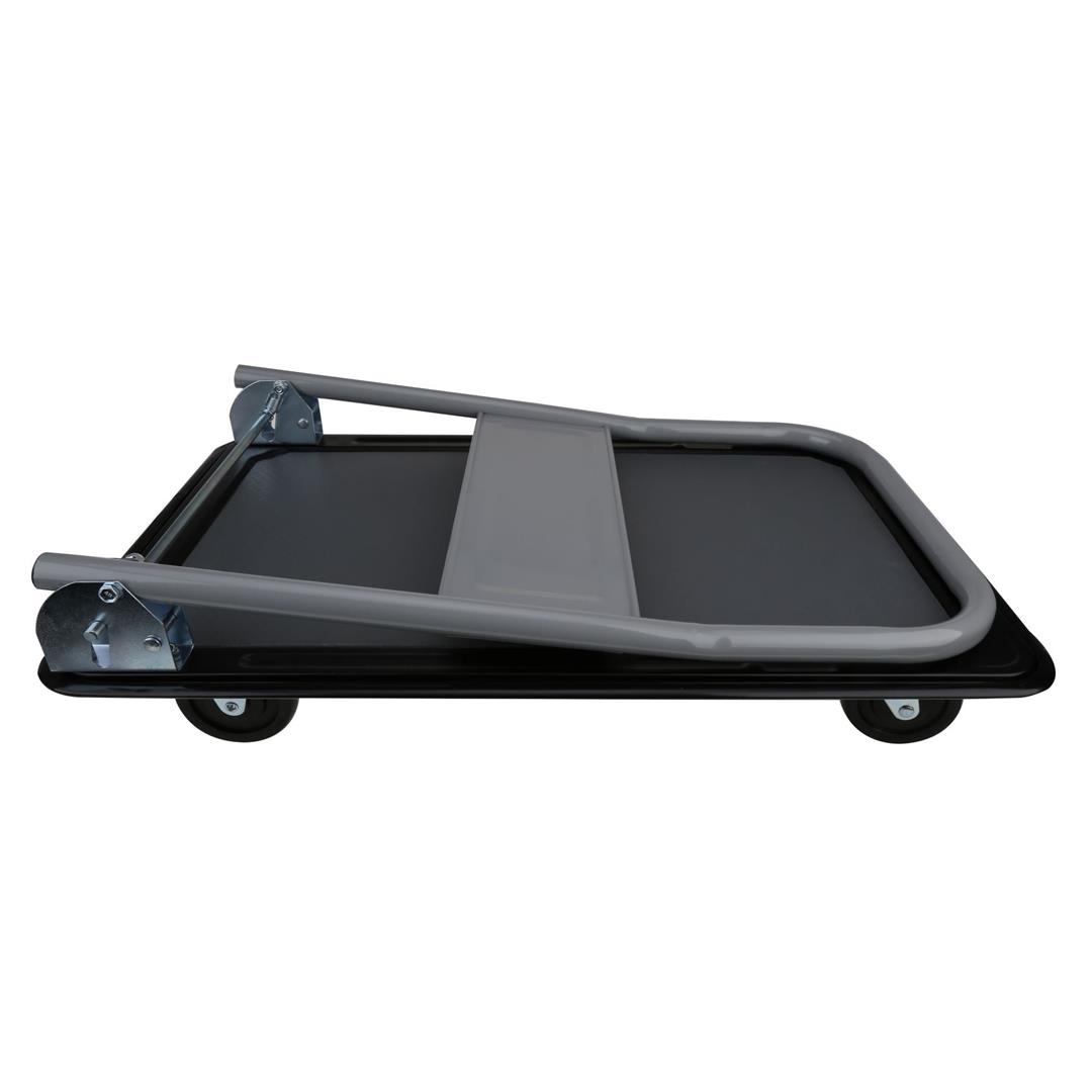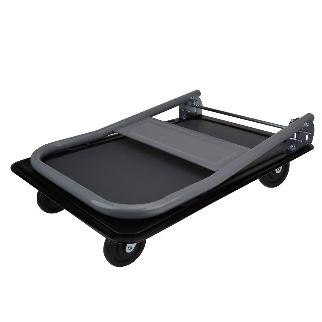 Hyper Tough folding, rolling utility cart, new Flat, mobile surface for material handling, moving furniture, warehouse stocking, and more Flatbed utility cart with a heavy-duty steel frame that folds up flat for convenient storage Textured blue vinyl deck provides a non-slip surface to make sure everything stays on board Solid, oversized 4-inch swiveling casters provide precision control and won’t ever go flat Wrap-around rubber bumper helps protect your walls and vehicles from scratches and scuffs Weight Capacity: 300 Pounds Deck Material: Vinyl Frame Material: Steel Color: Blue/Gray Open Dimensions (L x W x H): 18.25 x 28.5 x 32 inches Folded Dimensions (L x W x H): 18.25 x 28.5 x 9.5 inches Weight: 21.7 Pounds