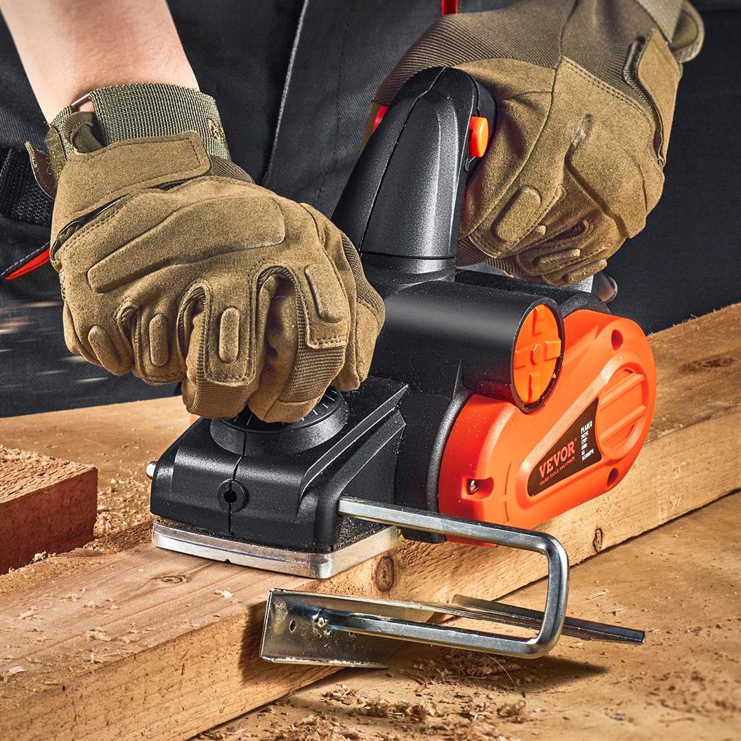Product Description KFFKFF Electric Handheld Planer KFFKFF electric hand planer is a versatile woodworking tool with a 3-1/4″ cutting width and a powerful 16500 RPM high-speed motor. It effortlessly achieves smooth surfaces in carpentry projects, providing precision and efficiency in your DIY woodworking endeavors. High-Power Motor for Effortless Planing Our electric handheld planer features a high-power motor that delivers outstanding performance, resulting in smooth and even planks, providing a comfortable and responsive tactile experience. Efficiency & Precision Cutting The electric hand planer has a maximum width of 3-1/4″ (82.55 mm) and a maximum depth cutting capacity of 5/64″ (2 mm), achieving high efficiency and precise cutting with ease. Dual Dust Extraction Designed with dual dust extraction slots, both sides of this electric handheld planer can accommodate dust collection bags, allowing compatibility with a vacuum cleaner for more flexible dust collection. Keep your workspace consistently clean and tidy. Smooth Planing The aluminum baseplate of our electric handheld planer undergoes multiple polishing and grinding processes, resulting in a smooth and even surface on the planks. The V-shaped guide groove ensures a smoother planing process without getting stuck. Portable & Easy Equipped with extra blades, our electric hand planer ensures that the work continues with ease. Dustproof storage case protects your equipment and is convenient for you to use on the go. Durable & Good Quality The core components of the planer are made of high-strength alloy with fiberglass-reinforced nylon material, which is sturdy and durable with a long service life. Specifications Item Model Number: 2822C Rated Voltage: 120V Frequency: 60 Hz Rated Current: 6A No-load Speed: 16,500 RPM Blade Dimensions: 3.15 x 0.31 x 0.08 in/80 x 8 x 2 mm Product Dimensions: 13 x 6.7 x 6.7 in/33 x 17 x 17 cm Net Weight: 6.44 lbs/2.92 kg Package Content 1 x Parallel Guide 1 x Allen Key 1 x Dust Bag Assembly 1 x Small Spanner 1 x Blade 1 x Storage Bag 1 x User Manual