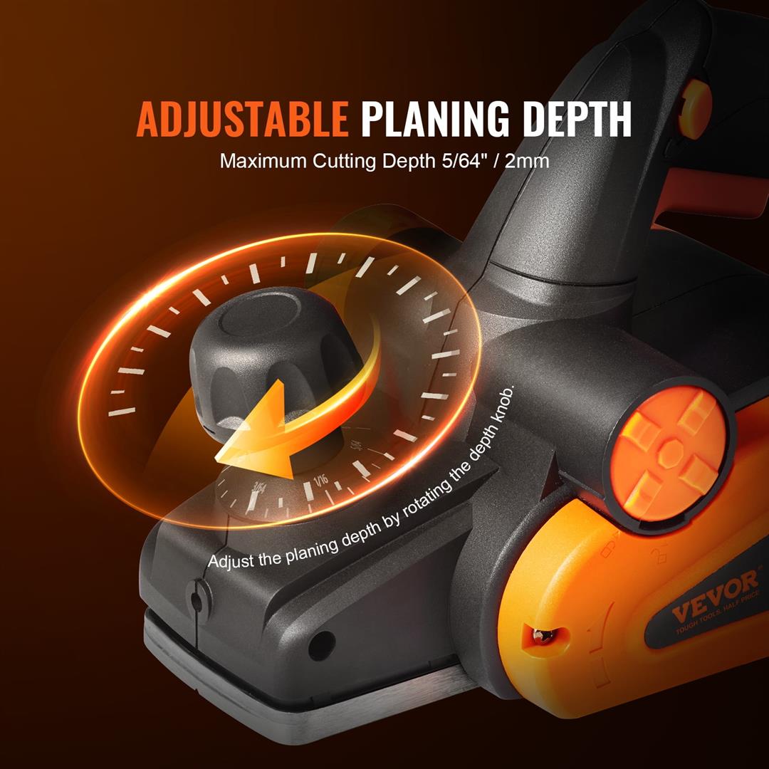 Efficiency at Its Best: Our electric handheld planer boasts a powerful 6A high-performance all-copper motor running at an impressive 16,500 RPM, delivering highly efficient and smooth planing results. Precise Craftsmanship: The electric hand planers HSS high-speed blades are crafted from W18Cr4V high-speed steel material with a hardness rating of ???58HRC, ensuring unmatched durability and precision. Effortless Cleanup: Equipped with a generously sized dust collection bag, the electric handheld planer reduces the frequency of cleaning while effectively gathering wood shavings, maintaining a clean work environment. Customizable Cutting: Featuring an adjustable cutting depth control knob, the electric hand planer allows for easy customization of depths ranging from 0 to 5/64 (2mm), catering to various needs. Built to Last: The core components of the electric hand planer are constructed of high-strength alloy materials, reinforced with fiberglass-enhanced nylon, offering robustness, durability, and an extended lifespan.