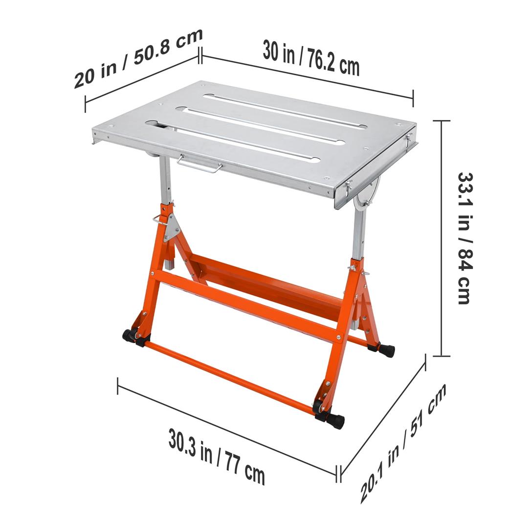 Product Description 30″ x 20″ Welding Table Introducing KFFKFF 30″ x 20″ Welding Table – your ultimate welding companion. With 400 lbs weight-bearing and tiltable tabletop, it promises flexibility and versatility for your welding projects. Say goodbye to frustrating, unstable work surfaces and take your welding to the next level with KFFKFF. 400-pound Weight Capacity This welded table is sturdy and lightweight, with a carbon steel frame and a rust resistant surface coating to ensure long-lasting durability. 3 Different Tilting Angles You can choose from 0 , 30 , and 90 tilt angles, and the table legs come with two wheels for easy folding, movement, and storage. Crossbar Support Structure With your feet, you can improve stability, maintain desktop stability, and easily control your work environment. Move with Ease Two sturdy foot pads and two moving casters provide additional flexibility and versatility Adjustable Height The height of the table can be adjusted from 25 inches to 32 inches to accommodate people of different heights. Convenient for Clamping The welding table has 3 fixed slots and 3 telescopic guide rails, making it easy to clamp the guide rails, blocks or fixtures. Specifications Table Dimensions: 30 x 20 in / 76.2 x 50.8 cm Tilt Angle: 0, 30, 90 Table Height: 25-32 in / 63.5-81.3 cm Maximum Weight Capacity: 400lb Max Tool Slots: Three 1.1″ x 22″ Slots Material: Carbon Steel Net Weight: 39.2 lbs / 17.8 kg Package Content 1 x Welding Table 1 x Set of Hardware