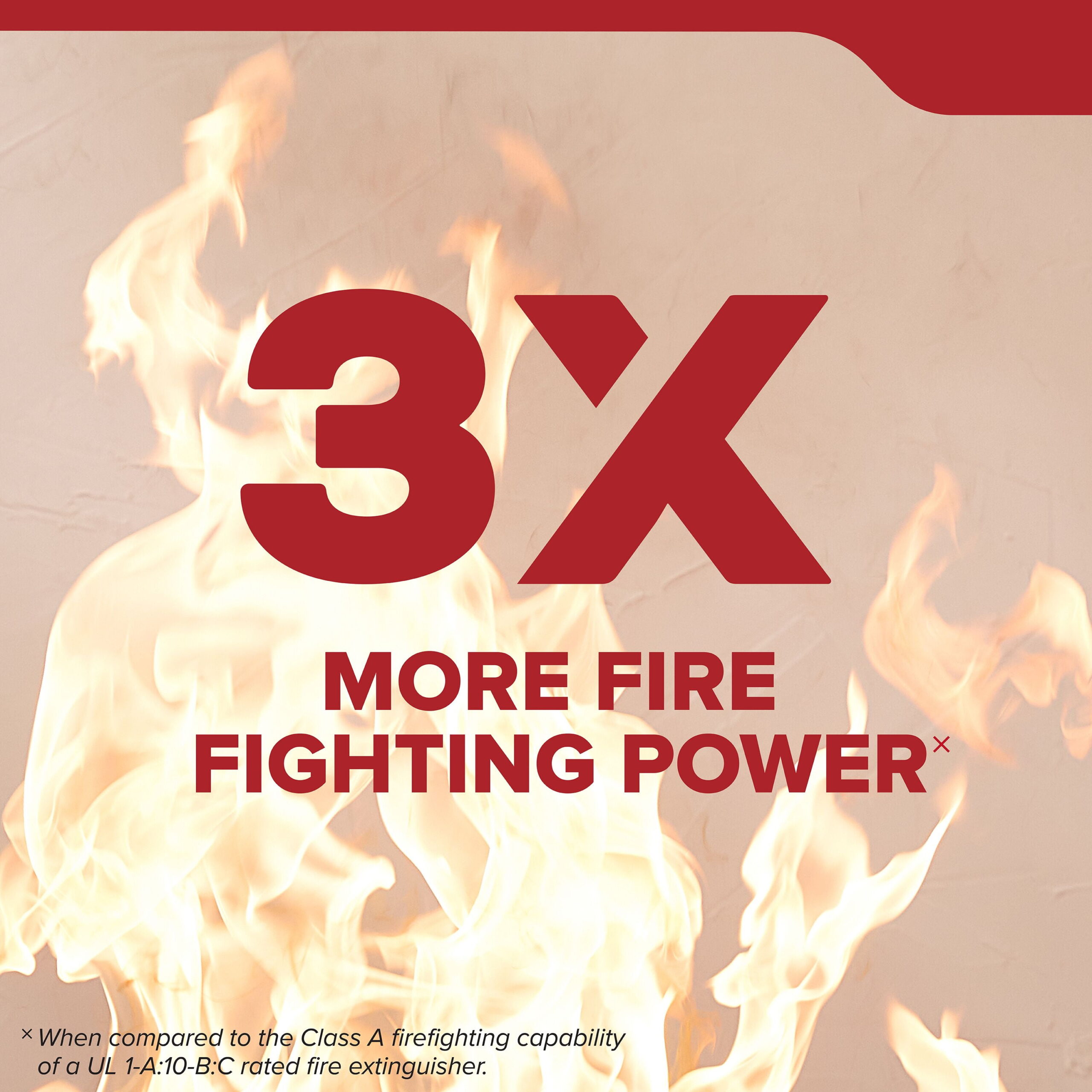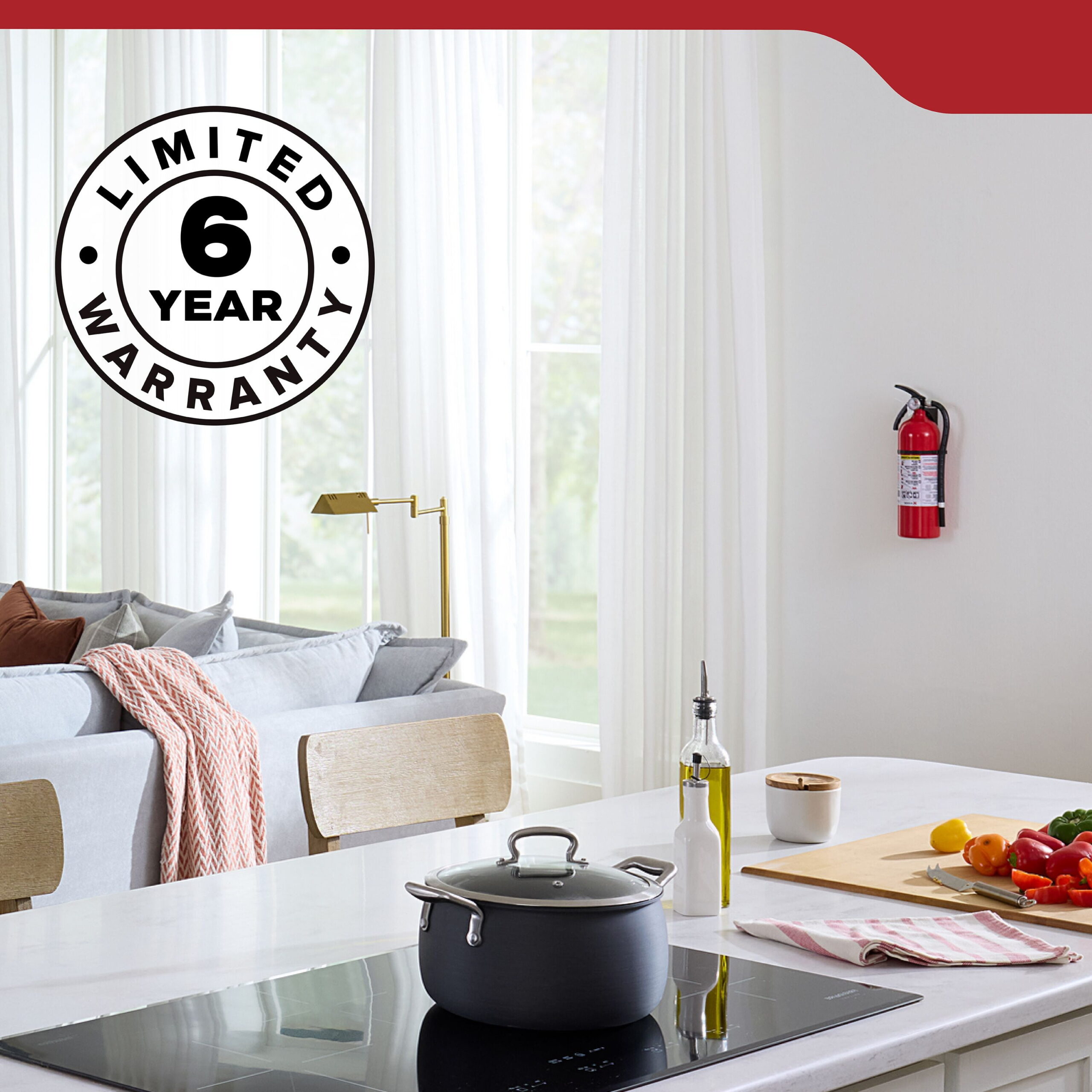 3X More Firefighting Power*: Combat common household fires with a 12-year service free design Reliable Fire Protection: Stop basic home fires involving trash, wood, paper, liquids, gases, and electrical equipment Easy-to-Read Pressure Gauge: If arrow is in the green its charged All-Metal Construction: Metal valve assembly, rust, and impact-resistant handle & easy pull safety pin UL-approved plastic wall hanger for easy mounting and storage (included) Quick and Powerful: Discharge time of 13-15 seconds, a discharge range of 12-18 feet 6-year limited manufacturer’s warranty Residential, single-use only Contains 5.5 lbs. of monoammonium phosphate fire-fighting agent Scan QR Code: Provides quick access to online registration, warranty, and product info *When compared to the Class A firefighting capability of a UL 1-A:10-B:C fire extinguisher