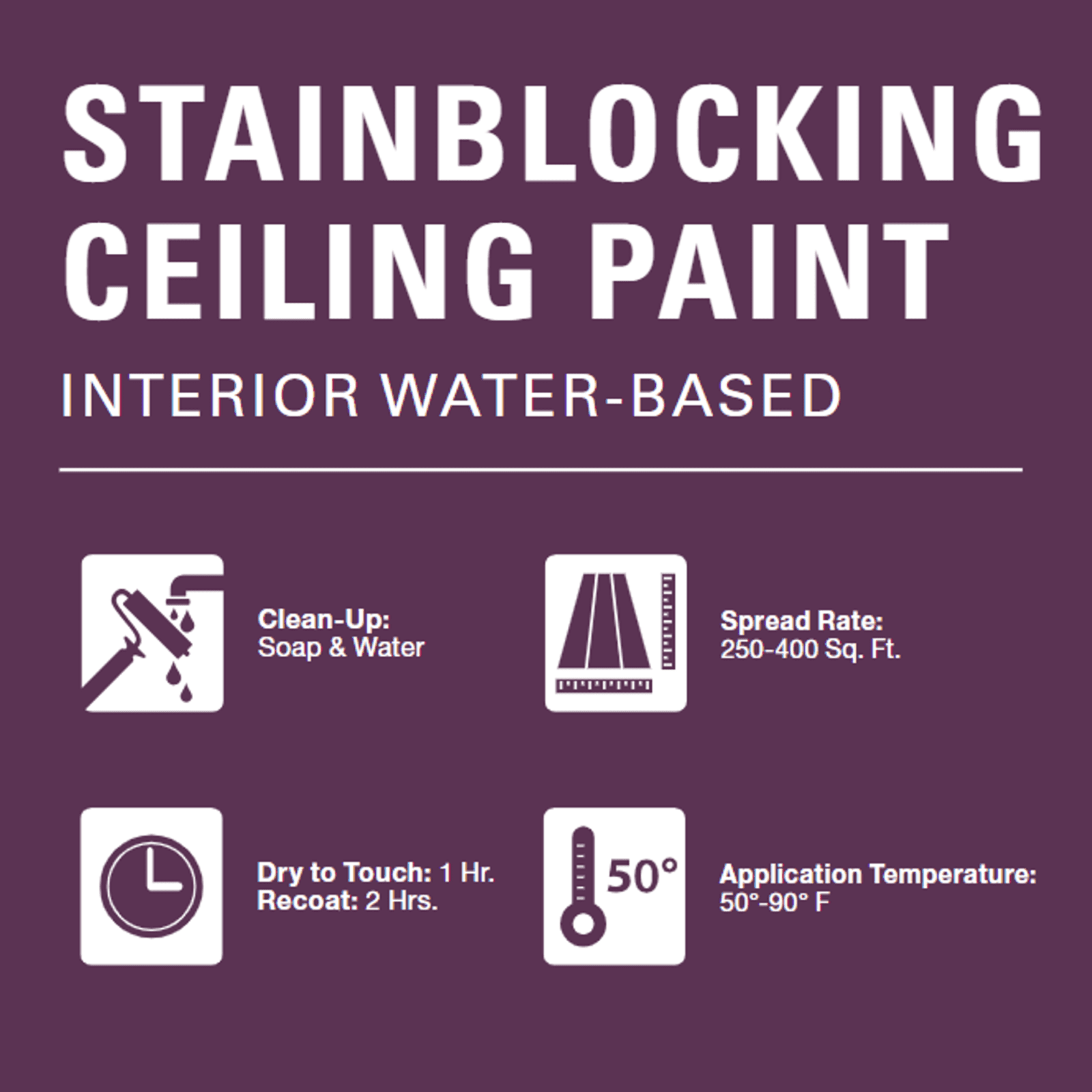KILZ Stainblocking Ceiling Paint is a unique combination of stainblocking technology and a coverage/dry time indicator. This color changing, stainblocking paint offers excellent coverage for water stains, color changes and to brighten drab ceilings. This ceiling paint rolls on with a subtle pink color that dries to white in under an hour. Dries to touch in 1 hour. Recoat in 2 hours. For use on all interior ceilings. Spatter-resistant formula rolls on easily with low odor making it a great choice for any room. Apply with a quality nylon/polyester brush or a 3/8″-1/2″ nap roller depending on surface texture. Can also be applied with a sprayer. See product packaging for complete application instructions. KILZ Stainblocking Ceiling Paint offers excellent coverage for minor to moderate staining