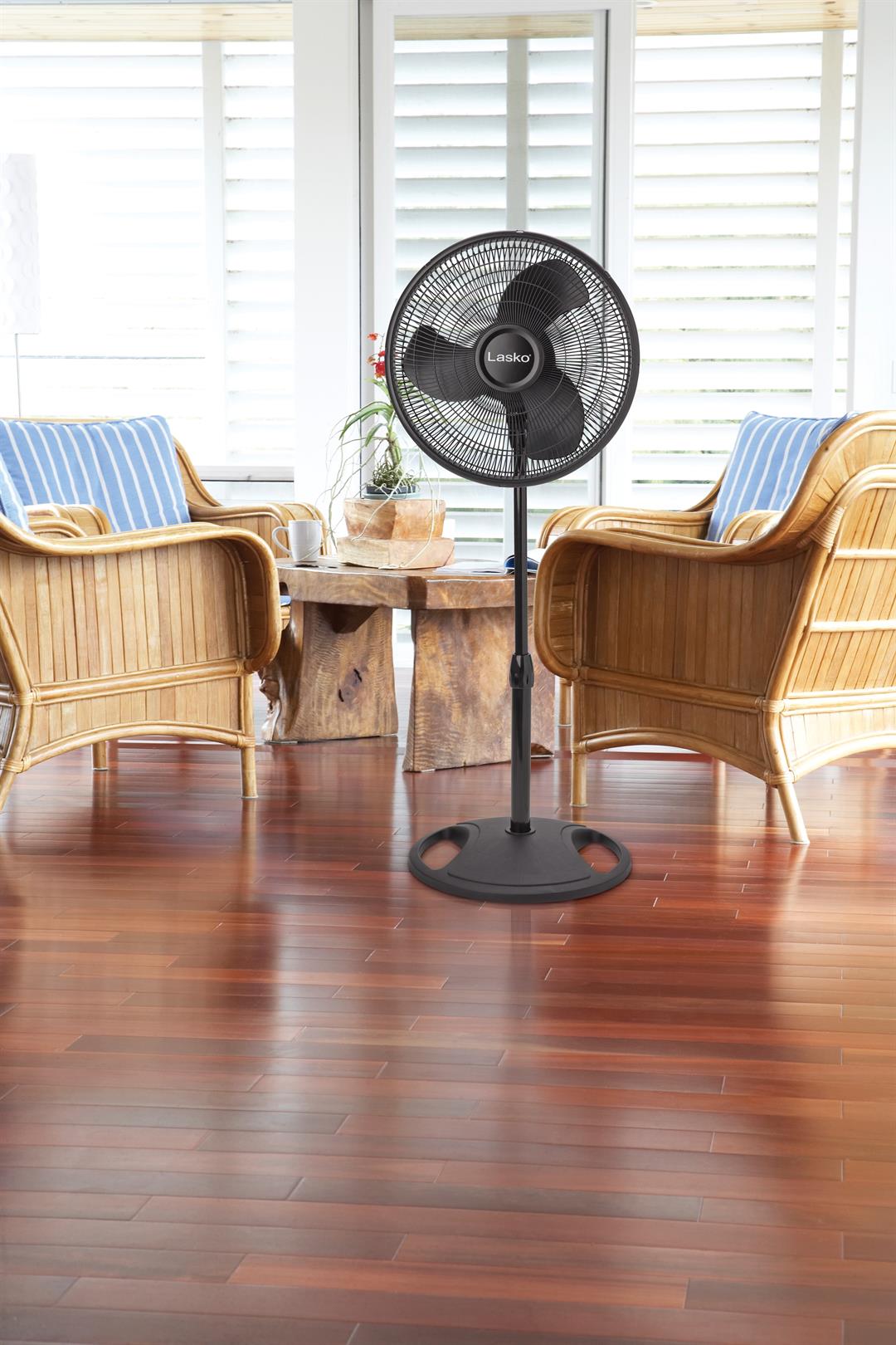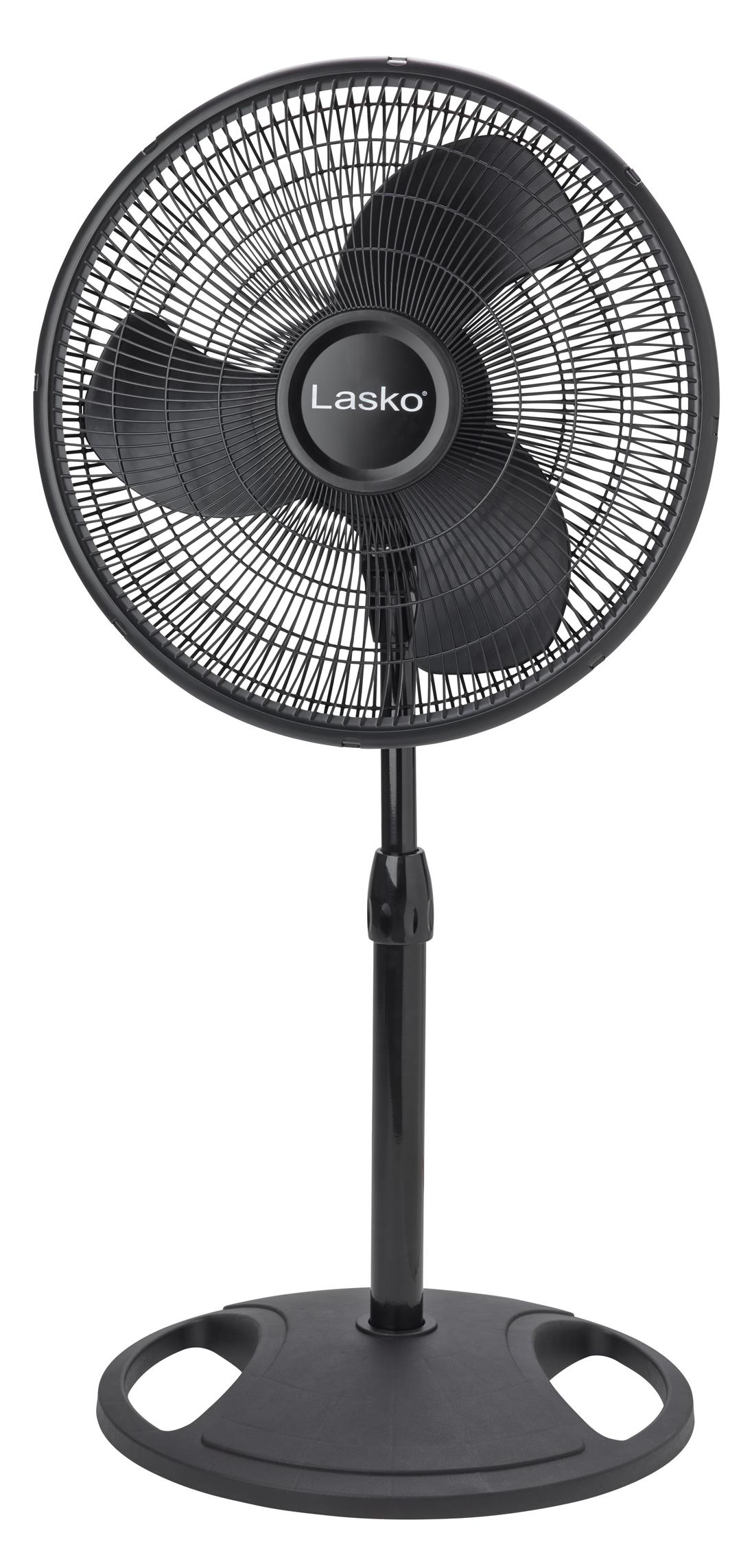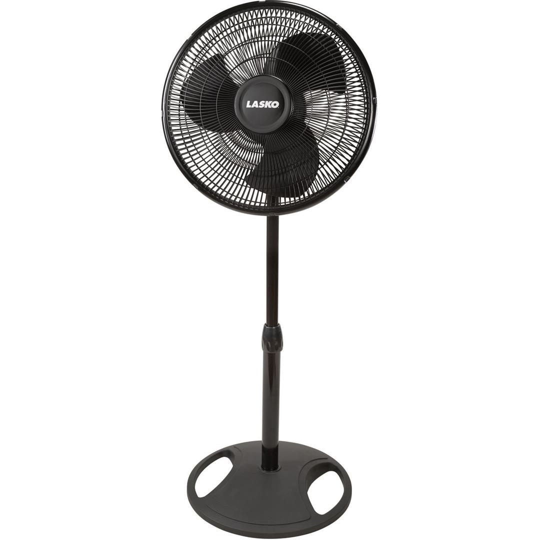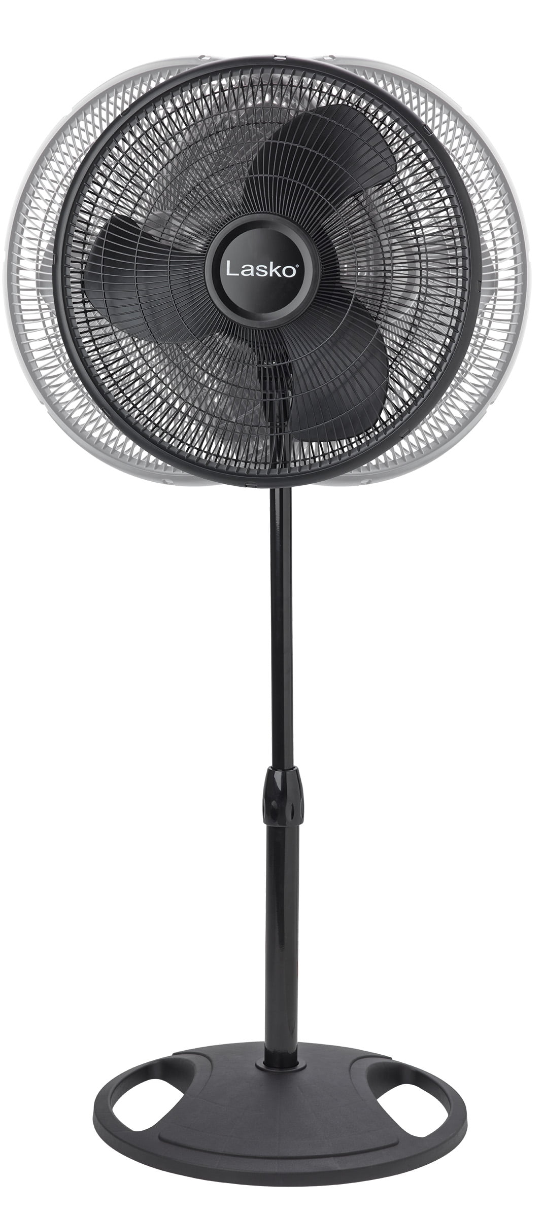 Enjoy a cooling breeze in every room with the 16-inch Oscillating Black Stand Fan by Lasko. It is great for use in homes, offices, classrooms, health clubs, stores, and more. The generous 16-inch blade provides a powerful flow of cooling air that is adjustable to 3 speed settings. With its tilt-back fan head, you can set this pedestal fan to blow the air up towards the ceiling, creating air circulation throughout the room. The wide angle oscillation ensures that all corners of the room are covered. The fully-adjustable height enables you to adjust it for maximum comfort. This fan is easy to assemble and comes with a 1-year limited warranty. Condition: New