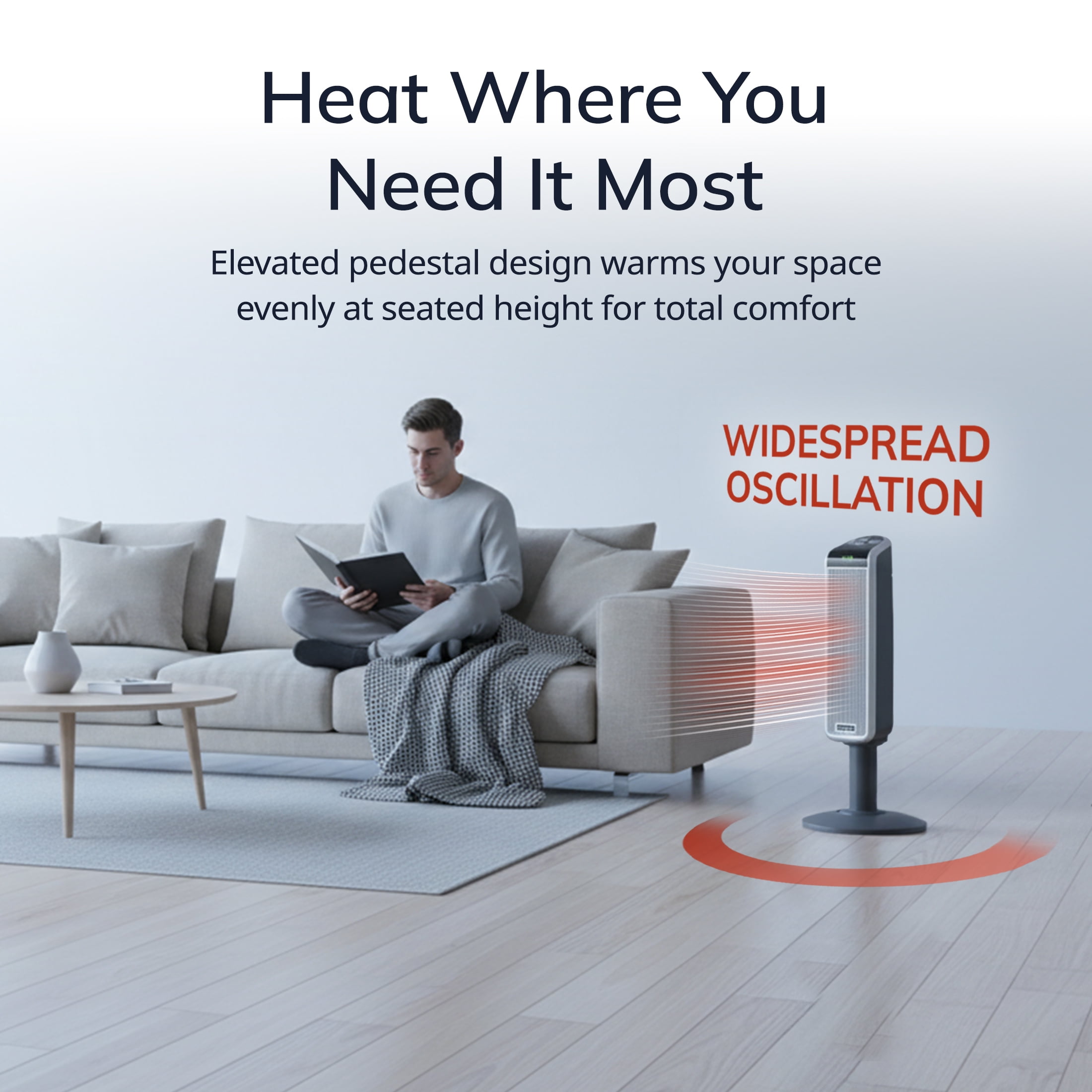Lasko 29″ 1500W Ceramic Pedestal Electric Space Heater with Remote, Gray, 5397