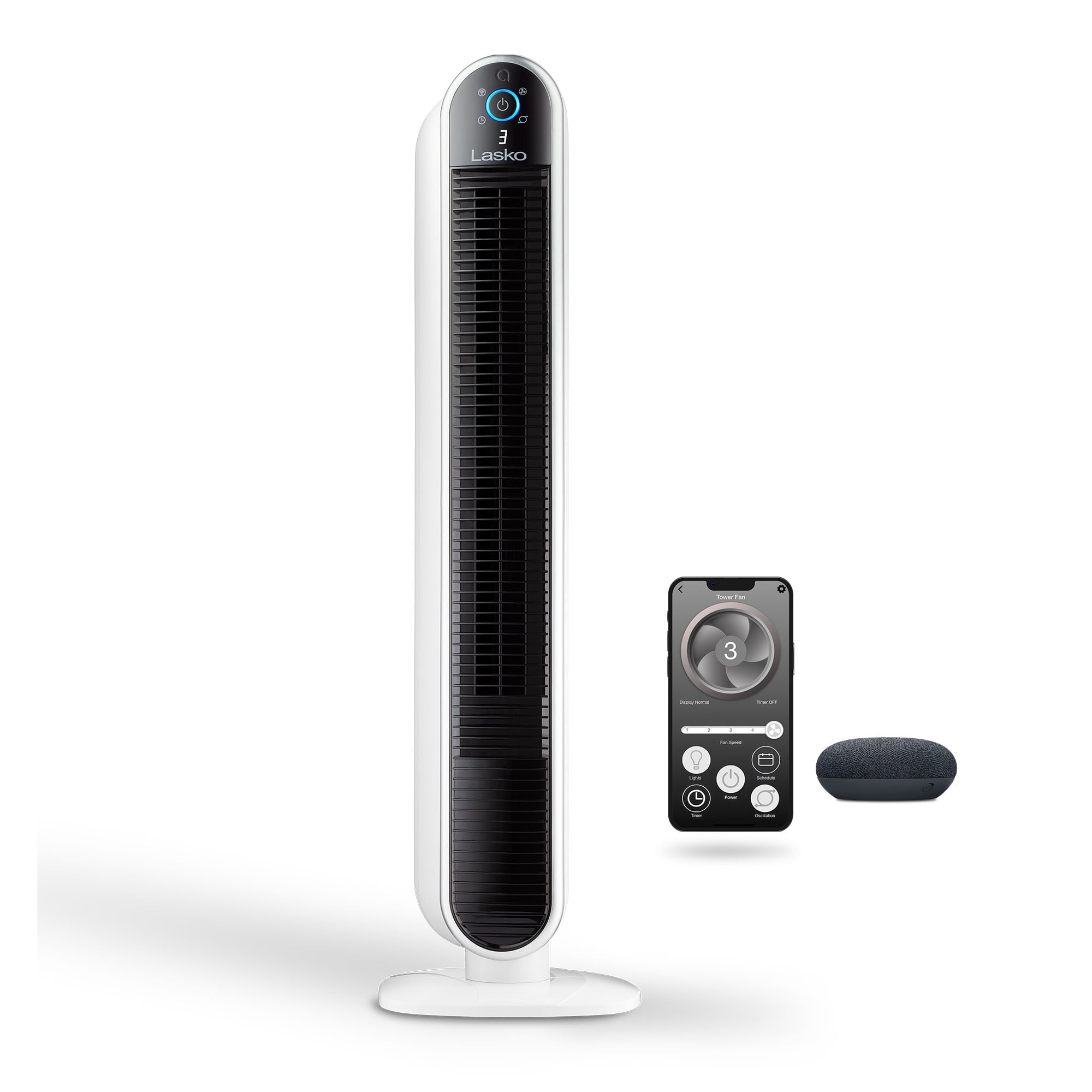 Lasko 40″ 5-Speed Smart Tower Fan Powered by Aria, Wi-Fi Connected, Alexa, Google, White, T40735
