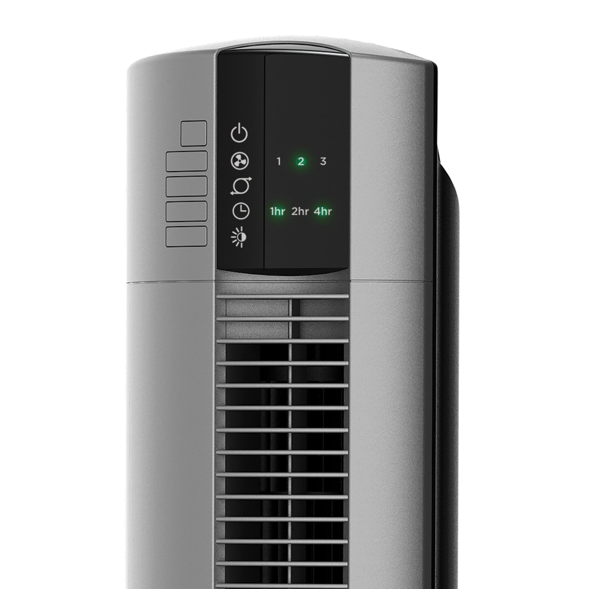 Powerful tower fan featuring 3 quiet speeds 7-hour auto-off timer Nighttime setting automatically decreases fan speed and dims control lights when needed Widespread oscillation for full-room coverage Multi-function remote control with on-board storage Simple, no-tools base assembly required 48-inch tall tower fan extends your comfort zone Slim, space-saving design fits almost anywhere Equipped with Lasko’s trusted, fused safety plug