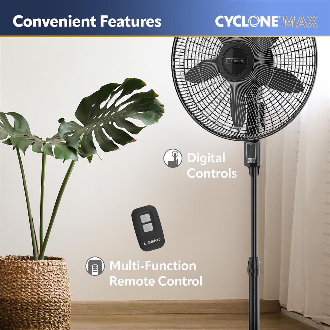 Lasko Cyclone Max 18″ 4-Speed 23 ft/s High-Velocity Remote Controlled Pedestal Fan, Black, S18605