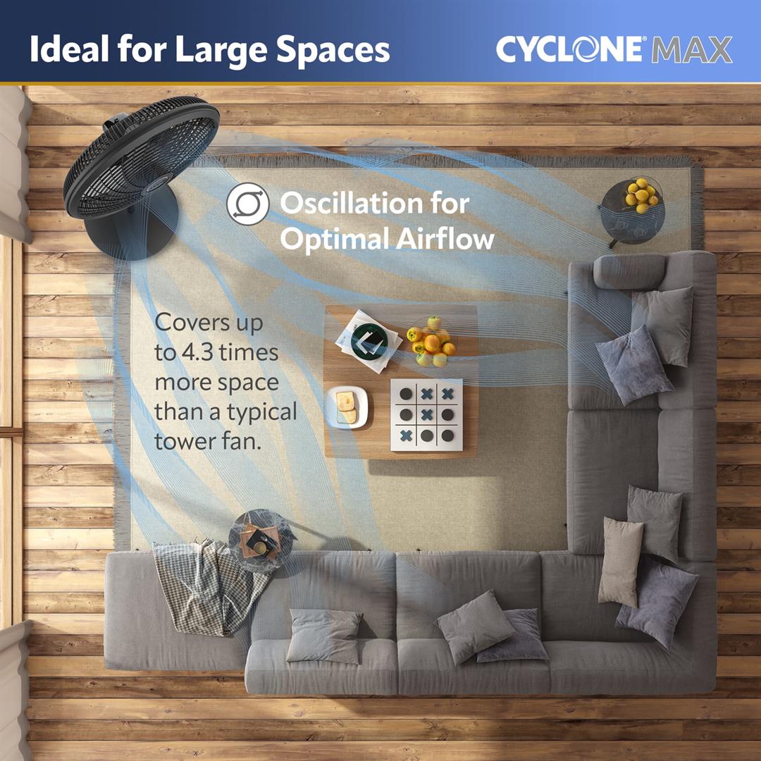 Experience cooling and comfort with the Lasko Cyclone Max 4-Speed Remote Control Pedestal Fan with 18-inch fan blade. This floor fan features a metal grille that ensures durability and also operates quietly. The 18″ high-velocity blade moves air at a speed of up to 1,378 feet per minute, providing a powerful breeze that cools any room. This pedestal fan circulates air up to 19 times an hour in extra-large rooms and 38 times an hour in larger spaces, making it an ideal addition to bedrooms, dining rooms, basements, offices, and kitchens. Unlike conventional tower fans, this Cyclone Max covers up to 4.3 times more space, ensuring air distribution throughout your room. Features customizable height settings, allowing you to modify the fan’s height from 41 inches to 53 inches for tailored airflow direction. The widespread oscillation feature ensures complete room coverage, while the tilt-back fan head enables precise adjustments of airflow up or down to suit your preference. Manage your cooling experience with electronic controls offering 4 high-performance speeds. Enjoy the convenience of the multi-function remote control, granting you the power to operate the fan from a distance, adjusting speeds or turning it on/off with ease. Setting up your Cyclone Max stand fan is a breeze with its tool-free assembly. Safety is paramount, and with the trusted Blue Plug technology, this fan prioritizes your well-being by promptly responding to short circuits, ensuring a secure user experience. This fan also comes with a 1-year limited warranty.