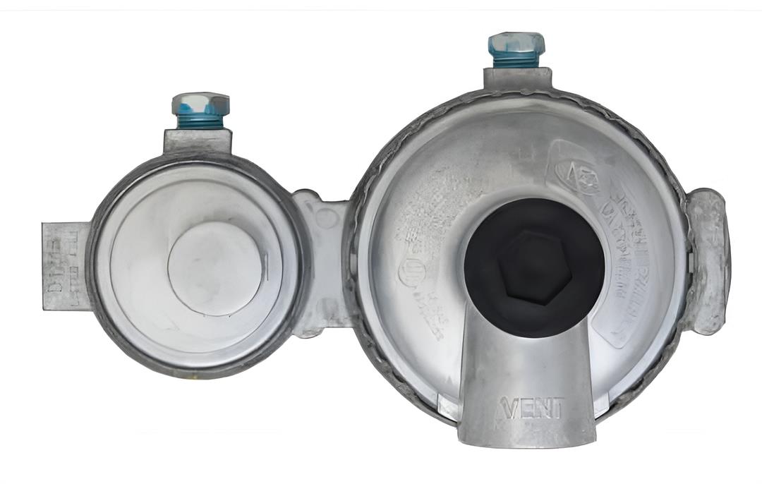 1/4 Inch FNPT Inlet x 3/8 Inch FNPT Outlet With 90 Degree Vent; Two Stage; 175000 BTU; Without Hose; Zinc Powder Coated; Zinc Die Casted; With POL Connector; Horizontal Mount