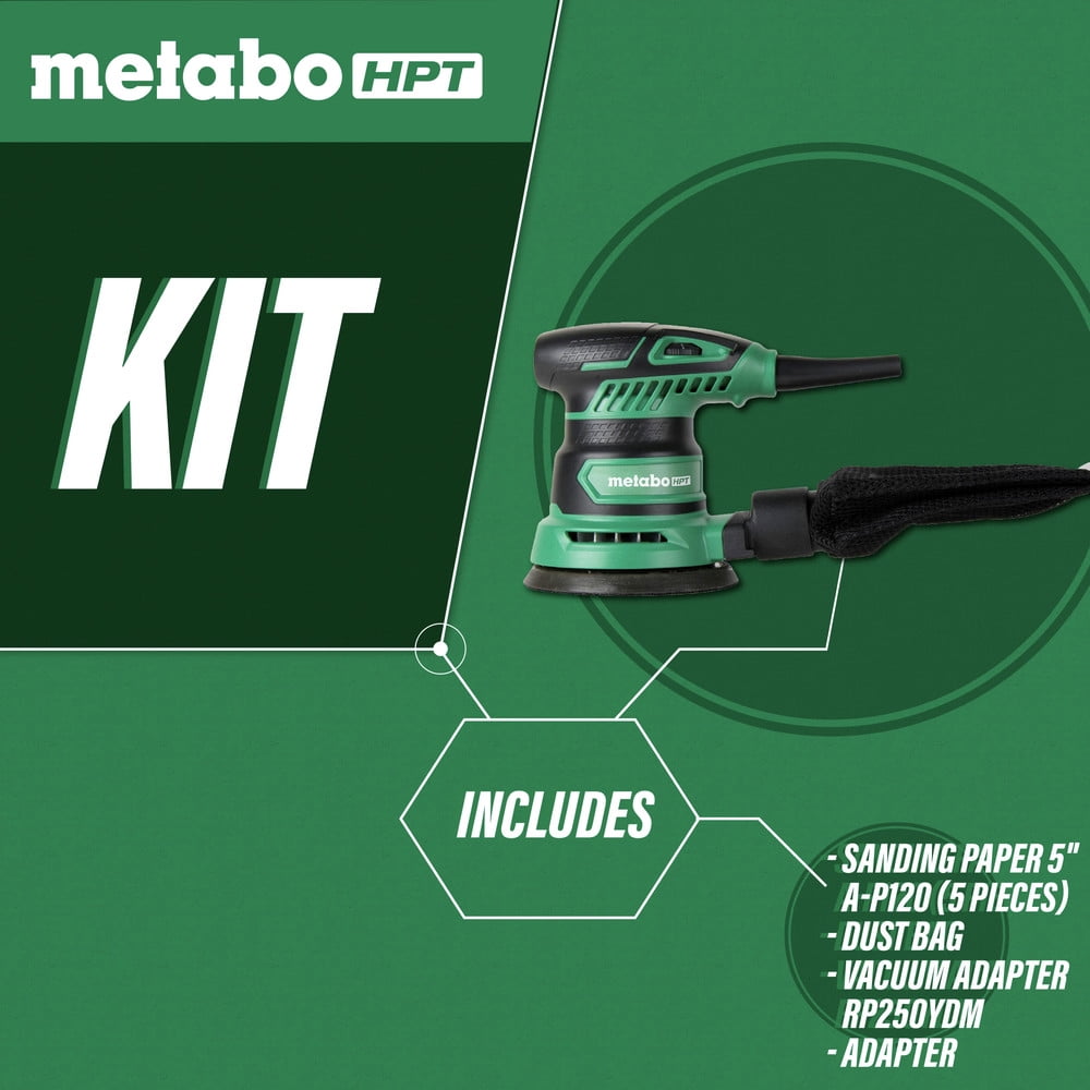 Metabo HPT 5-Inch Random Orbit Sander | Variable Speed | Powerful 230W 2.8 Amp Motor | Soft Elastomer Grip | Includes 2 Pieces of Sanding Paper, Dust Bag, Vacuum Adapter | 5-Year Warranty | SV13YST