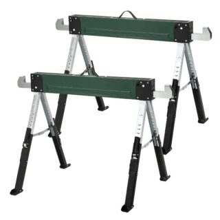 Lightweight, durable, and built for versatility, the Metabo HPT Heavy-Duty Sawhorse 2-Pack is the ideal solution for job sites, workshops, or DIY projects. Each saw horse supports up to 1,200 lbs, engineered for strength, yet weighs only 11.8 lbs (per pair) for effortless portability. The fold-flat design allows for quick setup and compact, space-saving storage. For added convenience, each unit features a built-in folding shelf and integrated cord hooks for on-the-go organization and additional workspace storage. The set also includes four sawbucks, designed to securely hold both 2×4 and 4×4 lumber, instantly converting your sawhorses into a stable cutting surface.