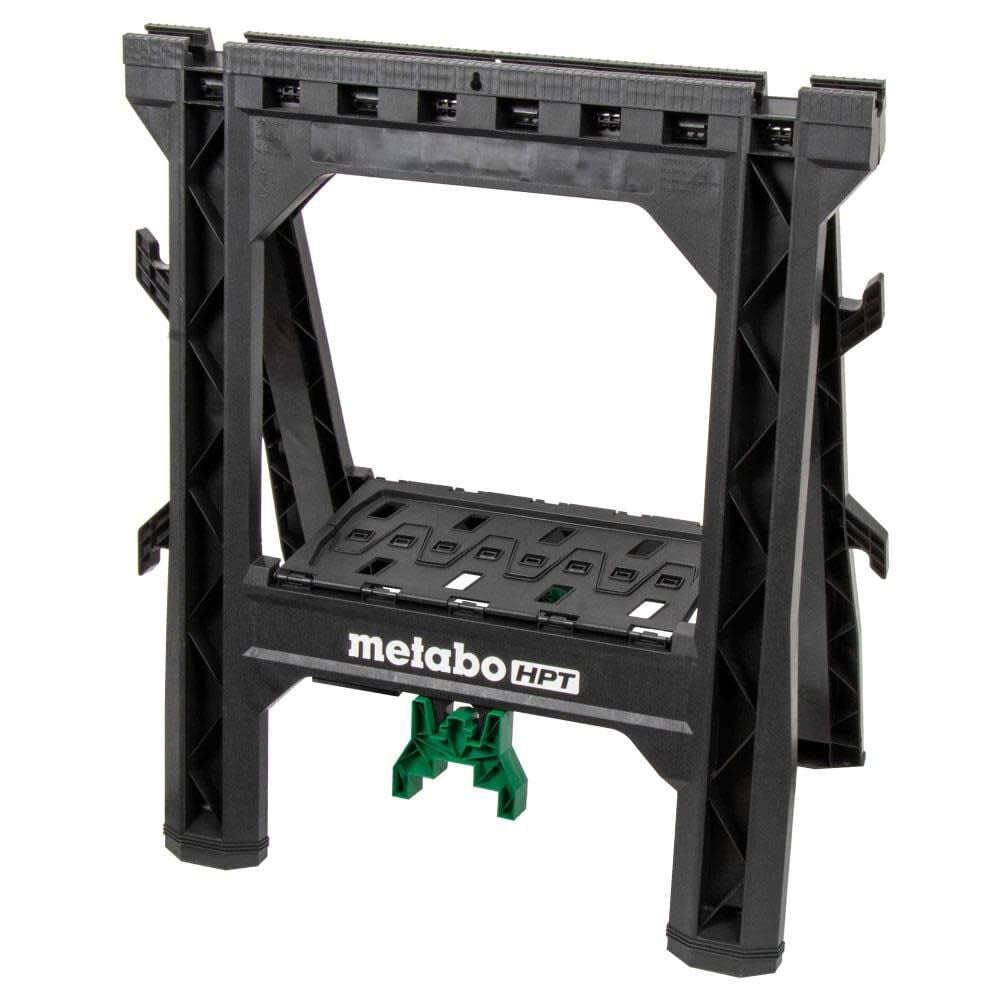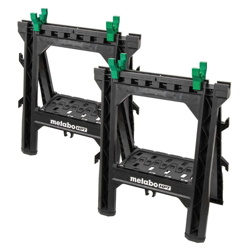 Metabo HPT Folding Sawhorses, 2-Pack, Lightweight Design, 1,200 lbs Capacity, Includes 4 Sawbucks, Ideal for Extra Workstations, Non-Skid Feet for Stability, Built-In Shelf and Cord Hooks, 115772M