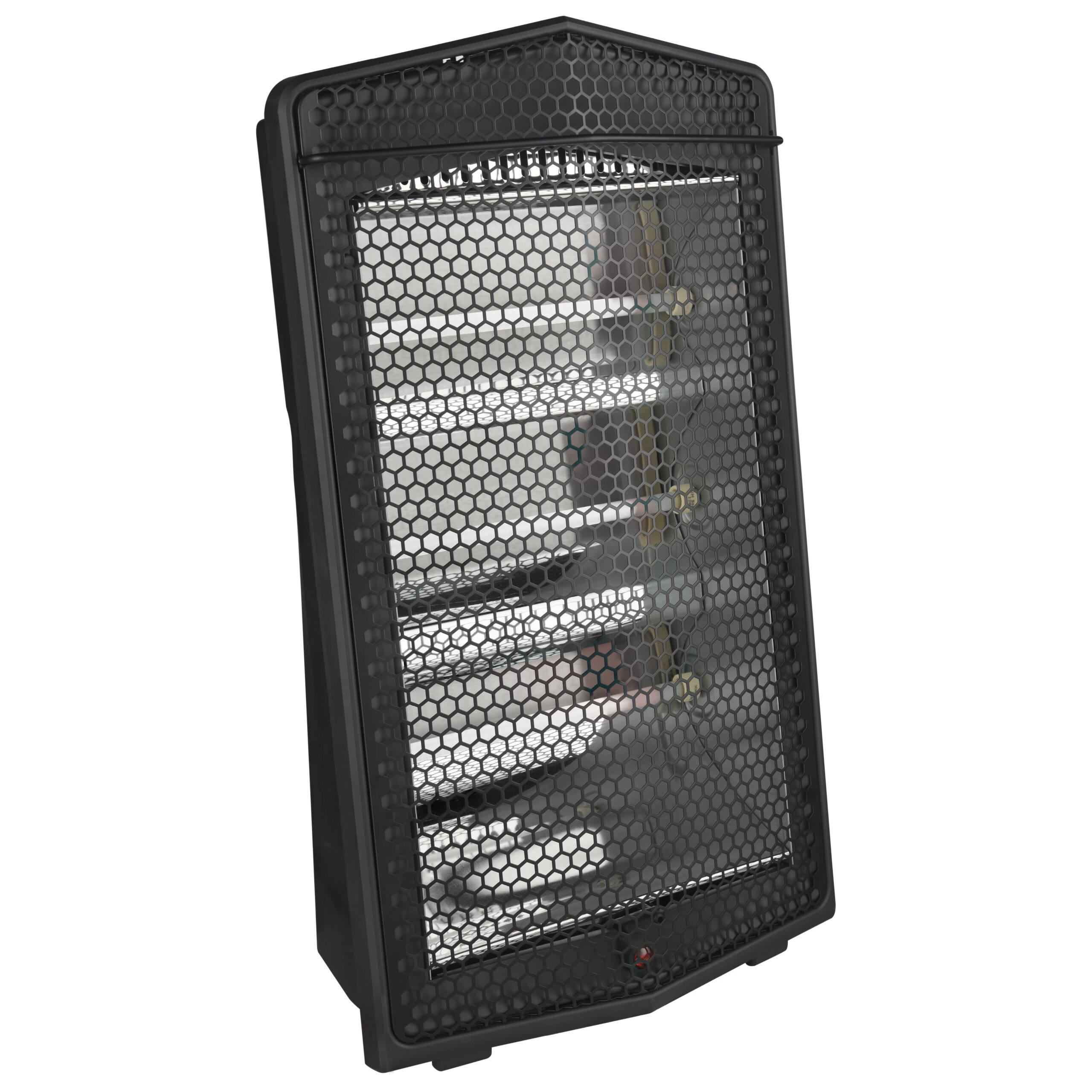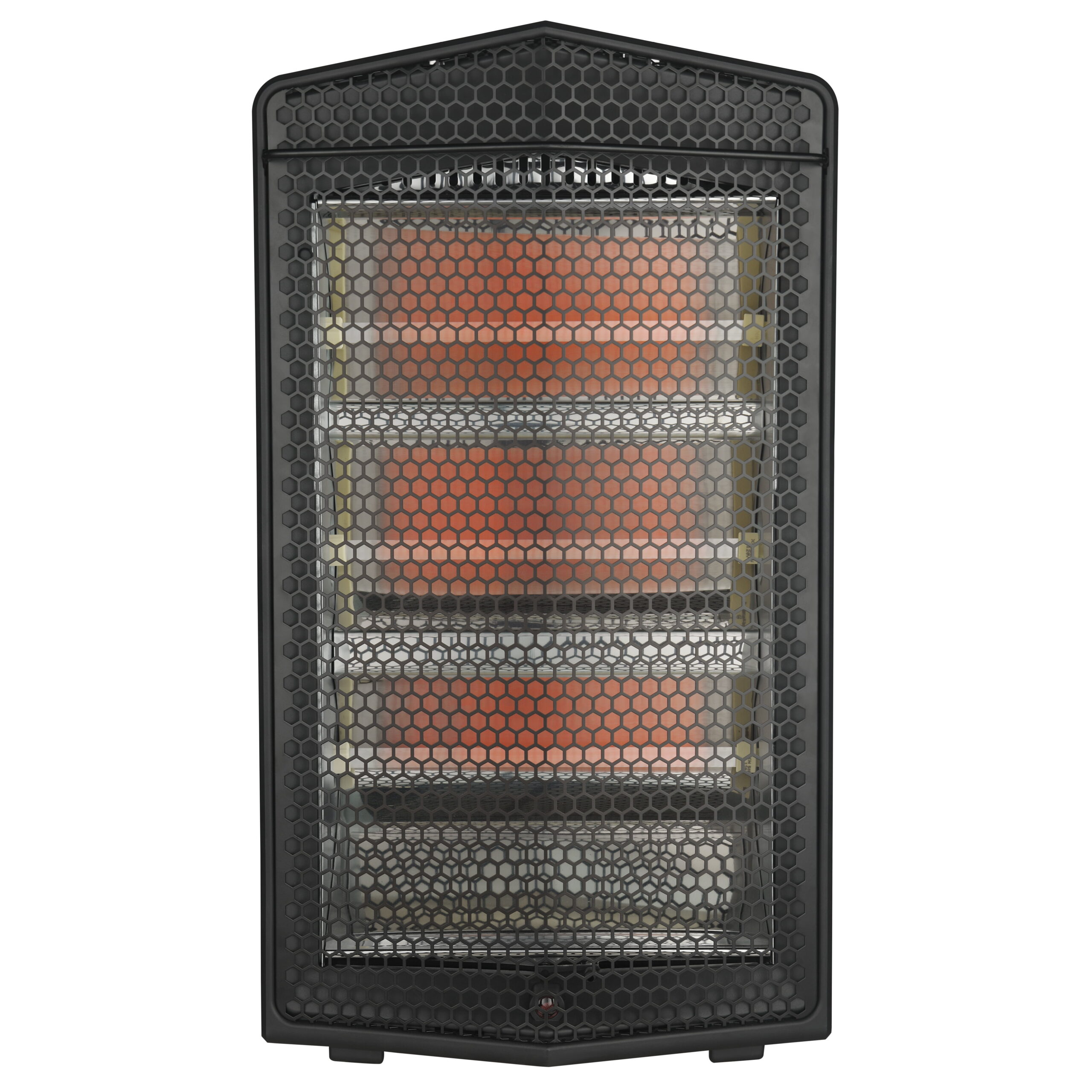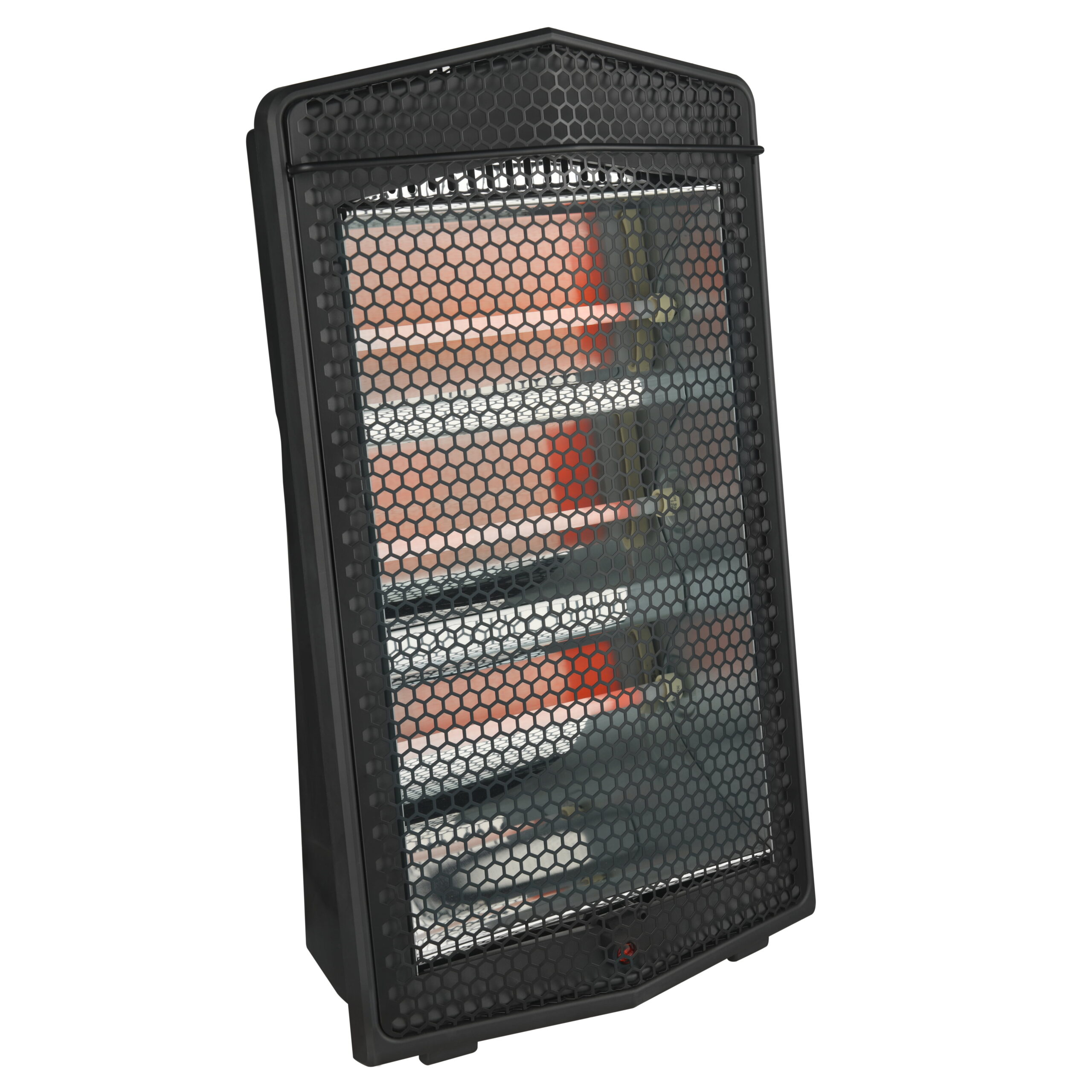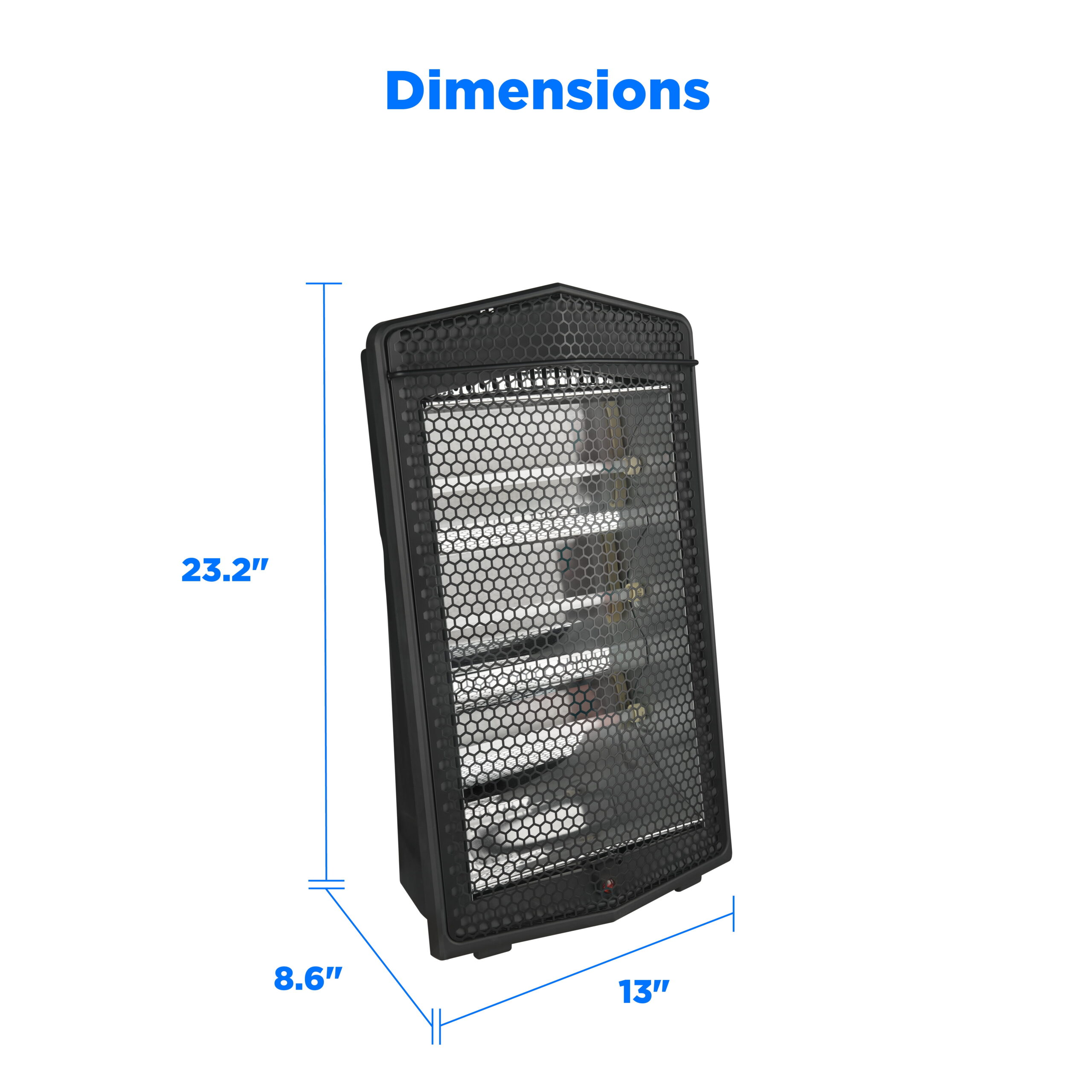 Create a warm and comfortable space for work or relaxation with this new Midea radiant quartz heater. By lowering your home thermostat slightly and using this heater to warm just the room you are occupying, it can lead to significant savings on your heating bills. The heater employs three quartz tubes, which heat up quickly and give off a warm glow when in use. The quartz heater offers 3 different heat settings. You can switch between the high, medium and low heat settings by simply turning a control knob at the top of the unit. A second knob allows you to easily adjust the thermostat to just the right temperature for your space. This heater is designed with safety in mind, a tip-over switch automatically turns the heater off if it is knocked over, while a built-in sensor helps to prevent the unit from overheating. A molded handle makes it easy to carry, and the stay-cool handle and housing allow you to safely transport it from room to room. The Midea quartz heater has a space-saving design that fits into small rooms with ease. It comes in a sleek black finish that effortlessly complements a wide variety of different decor styles.