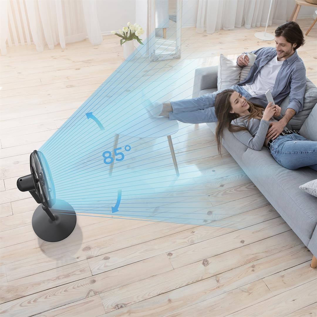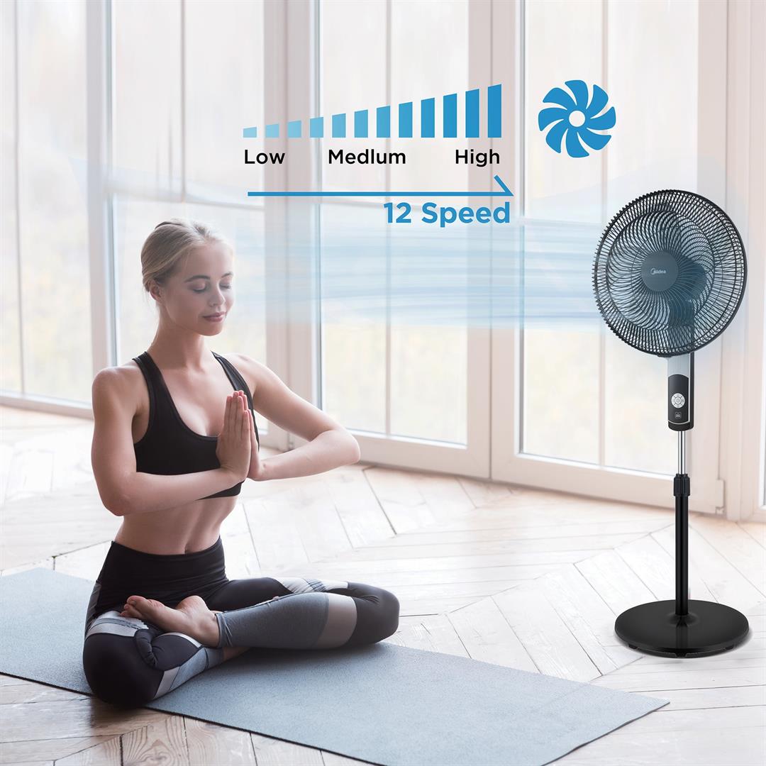 Midea 16″ 12-Speed Smart Pedestal DC Fan with Wi-Fi, MFS4022WARB, New, Black #1 Home Comfort Brand: Midea brand named #1 Home Comfort brand in the US according to Circana/Retail tracking service data for 2023 Smart Control Options: 12 Speed Settings: Programmable Timer: 85 Oscillation: 4 Fan Modes: Adjustable Height: