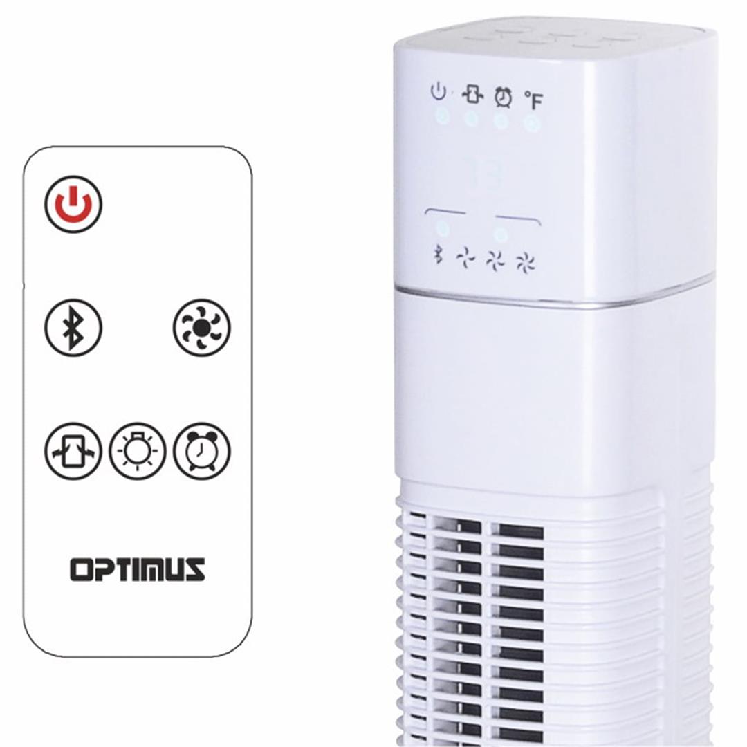 Optimus 48 Inch Pedestal Tower Fan with Remote Control, BT and LED