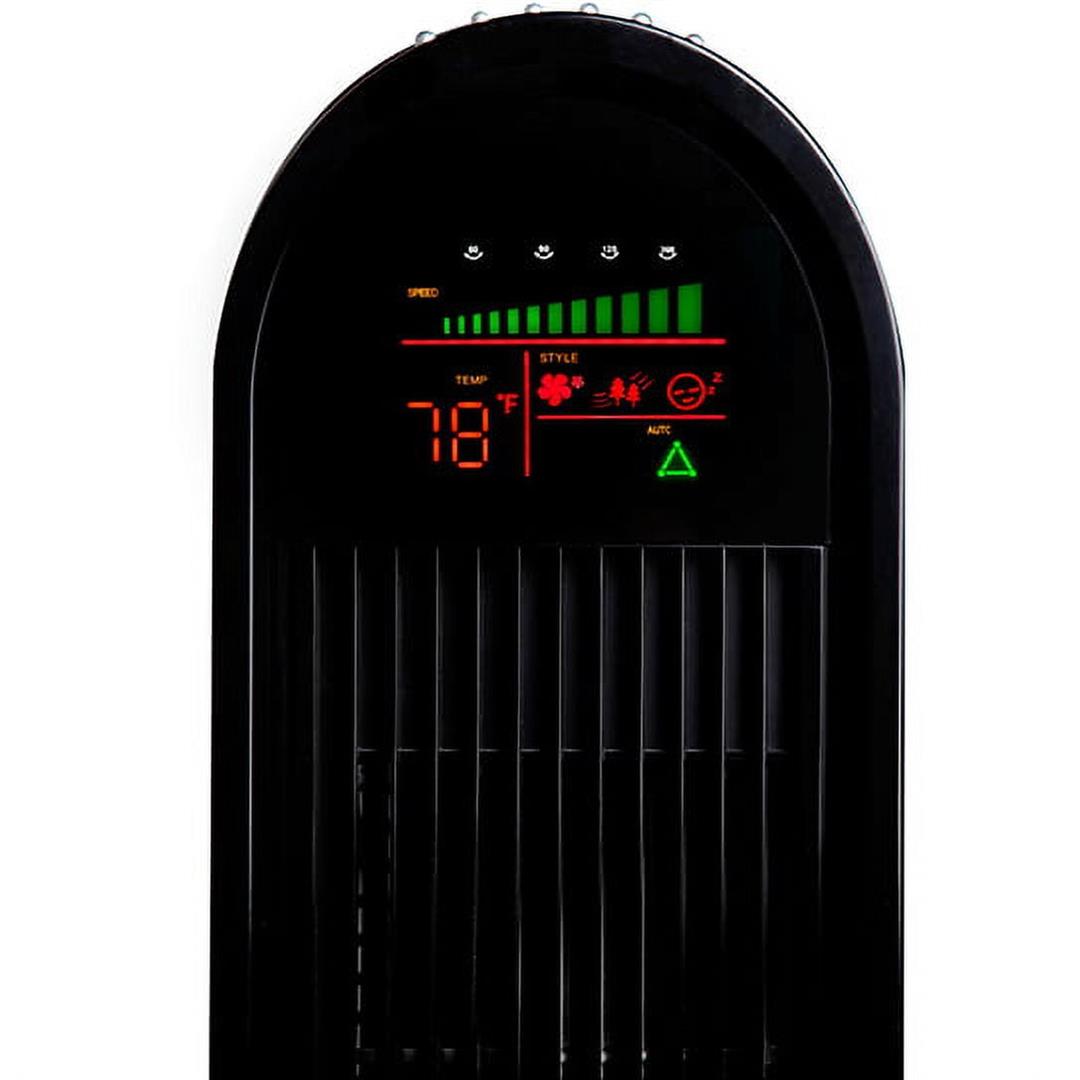 Boasting unrivaled technology, the Ozeri 360 Tower Fan oscillates at 60, 90, 120, or 360 degrees for partial to complete air circulation with 3 whisper quiet speed settings. Utilizes advanced cylindrical motion technology with over 200 staggered micro-blades to generate airflow at the lowest possible noise factor. Defines the latest in stylistic innovation with a sophisticated space-saving design that enhances room dcor, and a multi-colored LCD that displays all fan functions and the room temperature. Features 3 preprogrammed airflow patterns designed to foster sleep, relaxation and comfort with up to 360 degree whisper-quiet oscillation for optimal air circulation. Extended range remote control and fan control buttons provide easy access to all features, including the 8-hour programmable timer.