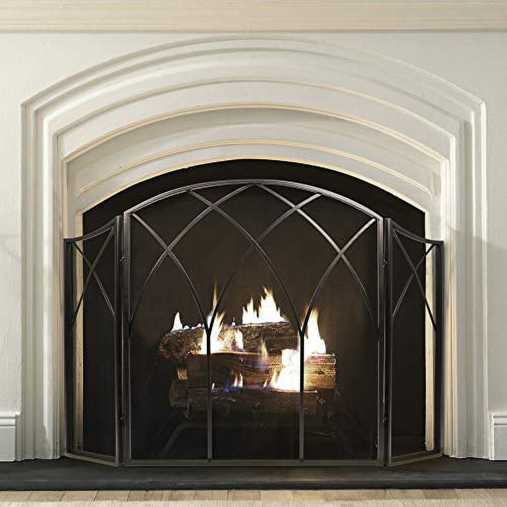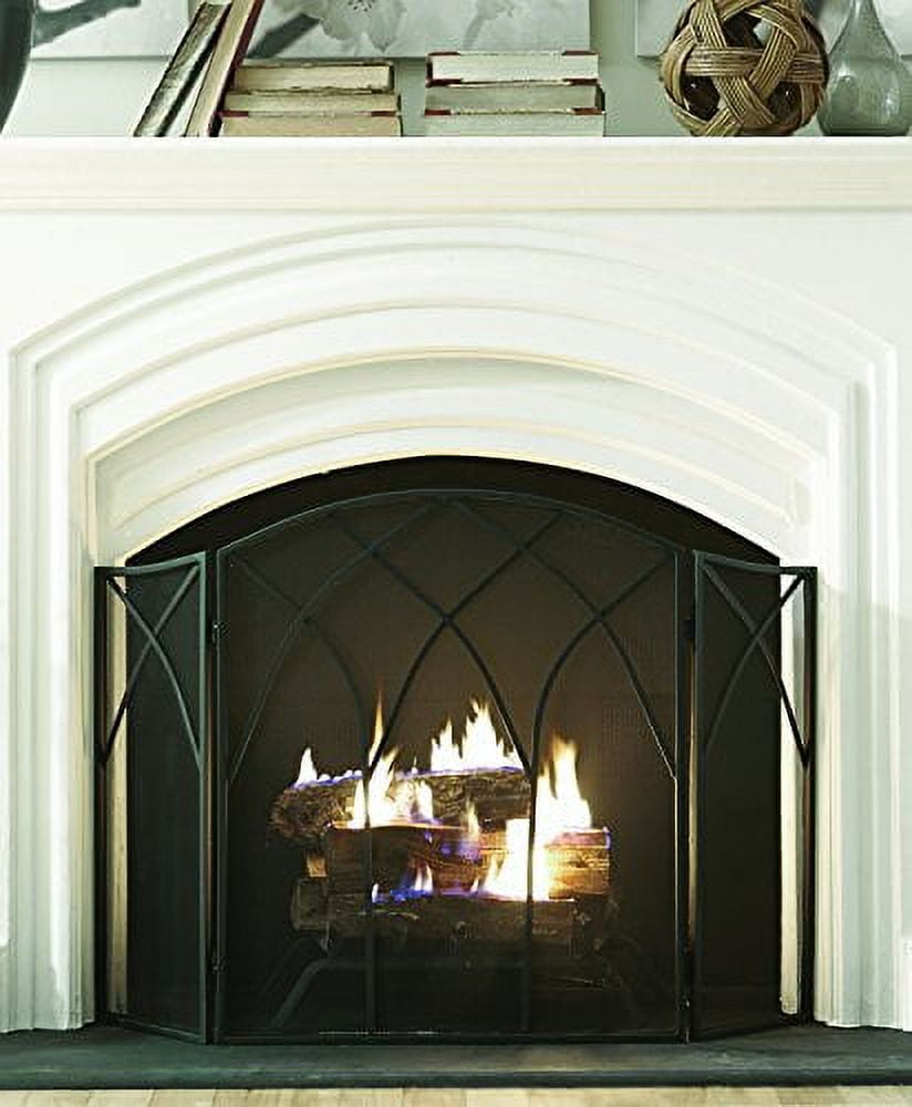 Enhance the decor of your room with this Pleasant Hearth Gothic Fireplace Screen. The overlapping arches of this item evoke an old -world feel that is elegant and powerful without being overly bold. This screen is completed in a black finish to blend in well with just about any decor. The narrow arches will beautifully outline your roaring hearth. This black fireplace screen is made from sturdy steel to hold up to lots of regular use. It features a three-panel design with handles for easier opening. The base is stable enough to stand up without tipping over. This Pleasant Hearth fireplace screen prevents cinders from flying out of the fireplace and into your home. It’s transparent so you can relax and watch the crackling fire. For optimal aesthetics use this product on a fireplace with a Pleasant Hearth door (available separately).