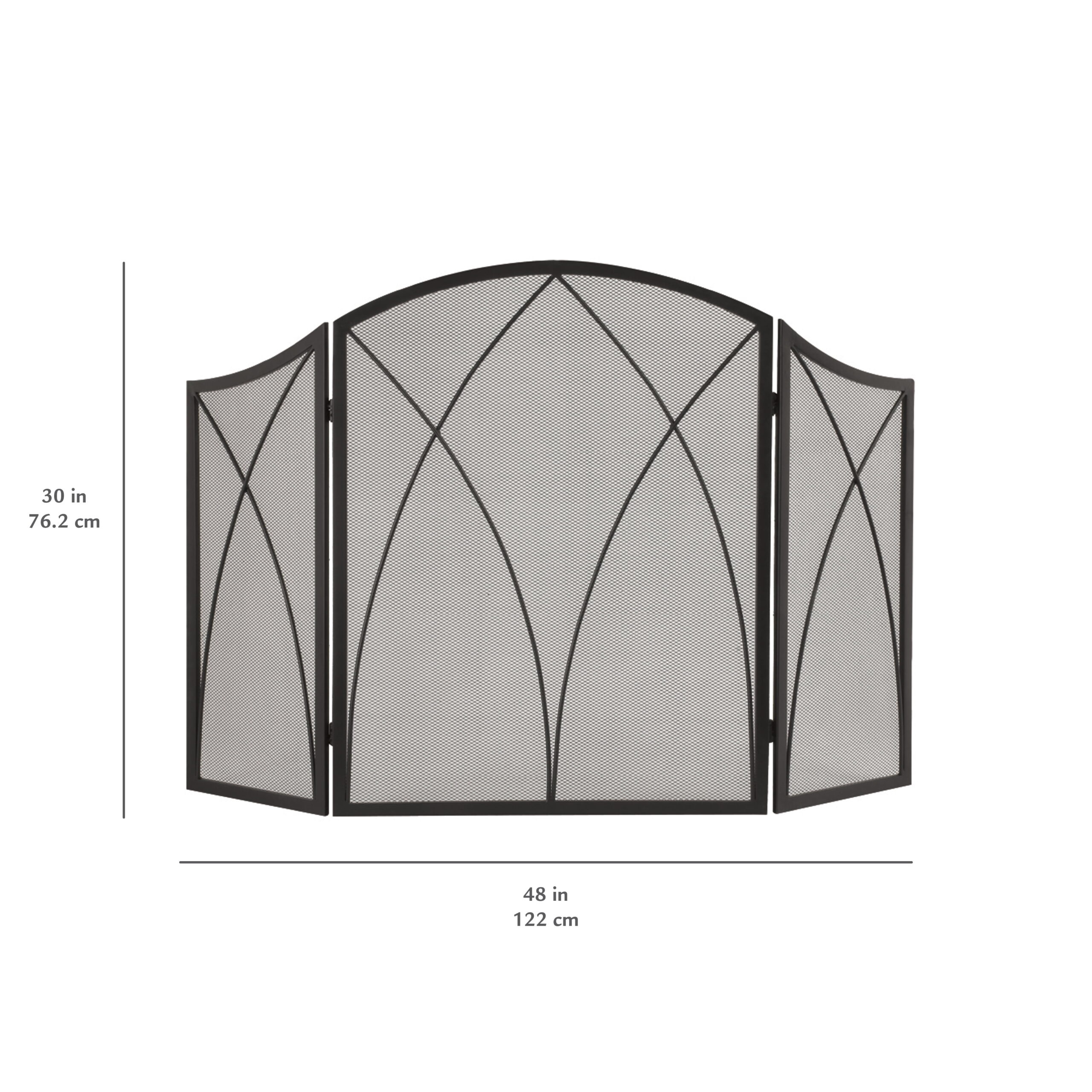 Pleasant Hearth Arched Fireplace Screen Dimensions: 48″W x 30″H Durable Steel Construction Black Finish 3-Panel Arched Design Heavy-Duty Mesh Screen Coordinates with Arched 4-Piece TOOLSet – Model # FA219TA Sold Separately