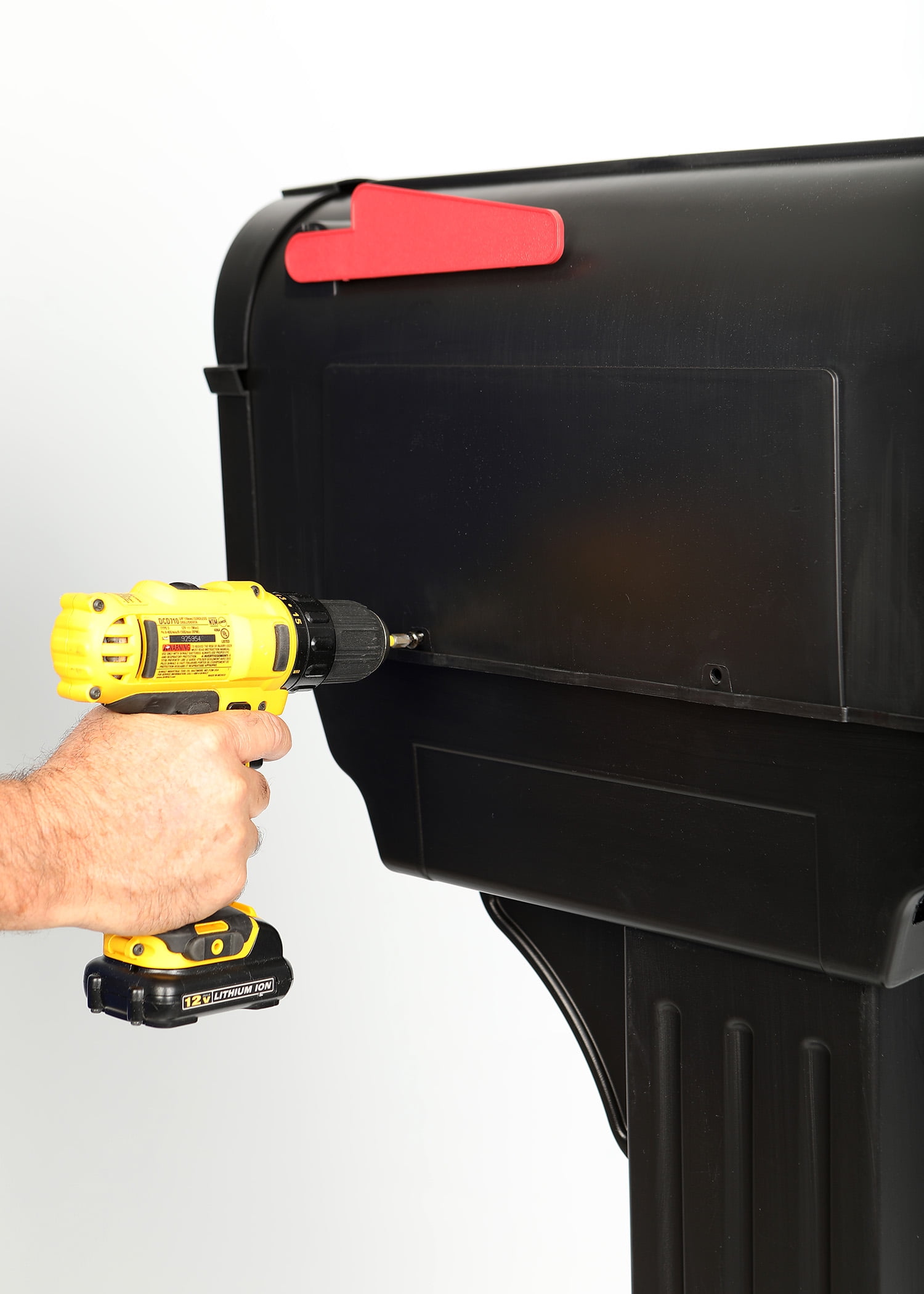 Weather and vandal resistant Heavy-duty plastic construction Will not rust Built-in newspaper port: accommodates small parcels and newspapers Easily installs over an existing or new 4 in. x 4 in. treated pine post (not included) Approved by the United States postmaster general A standard 4 x 4 treated pine post is actually only 3.5 in. x 3.5 in., does not slide over a post that measures 4 in. x 4 in.