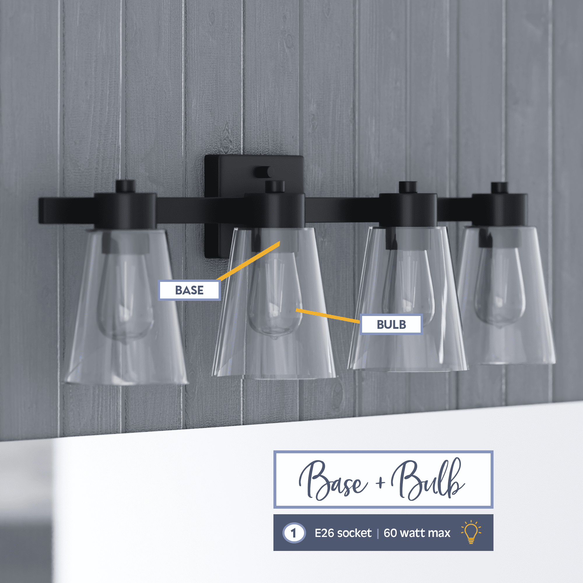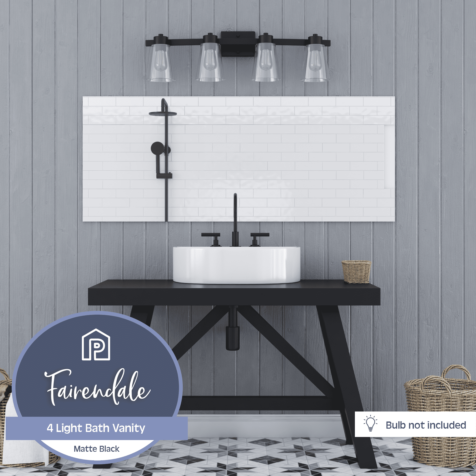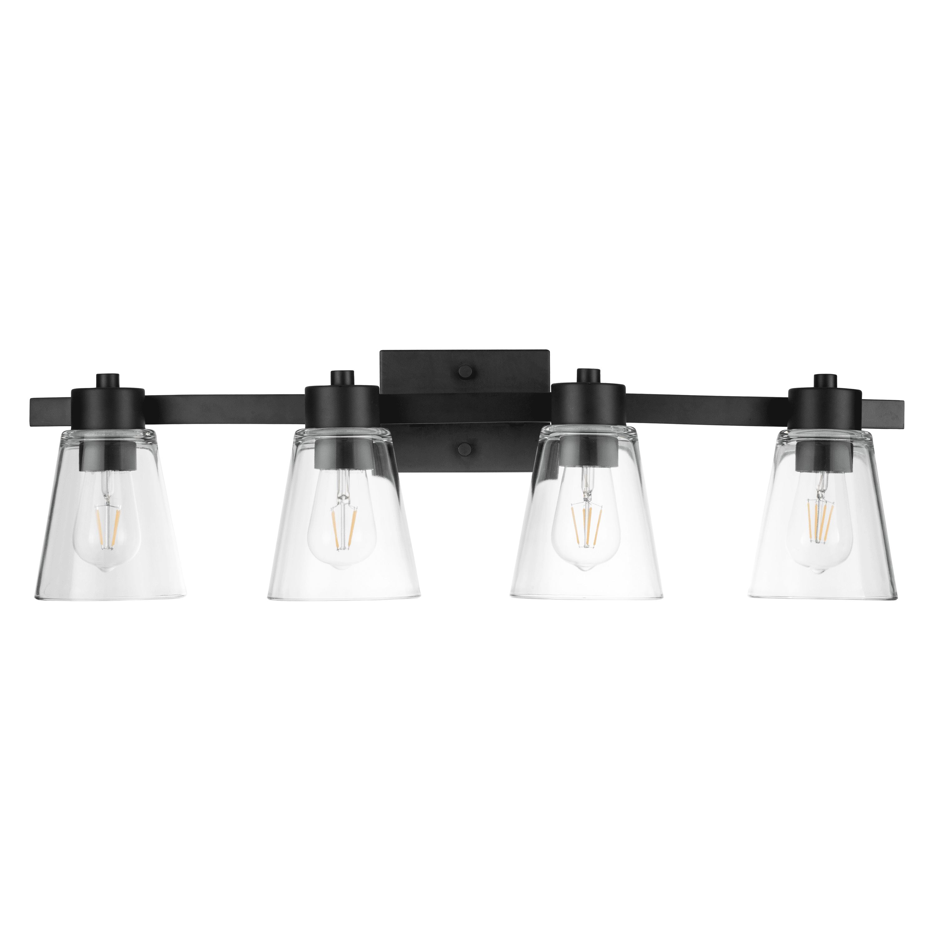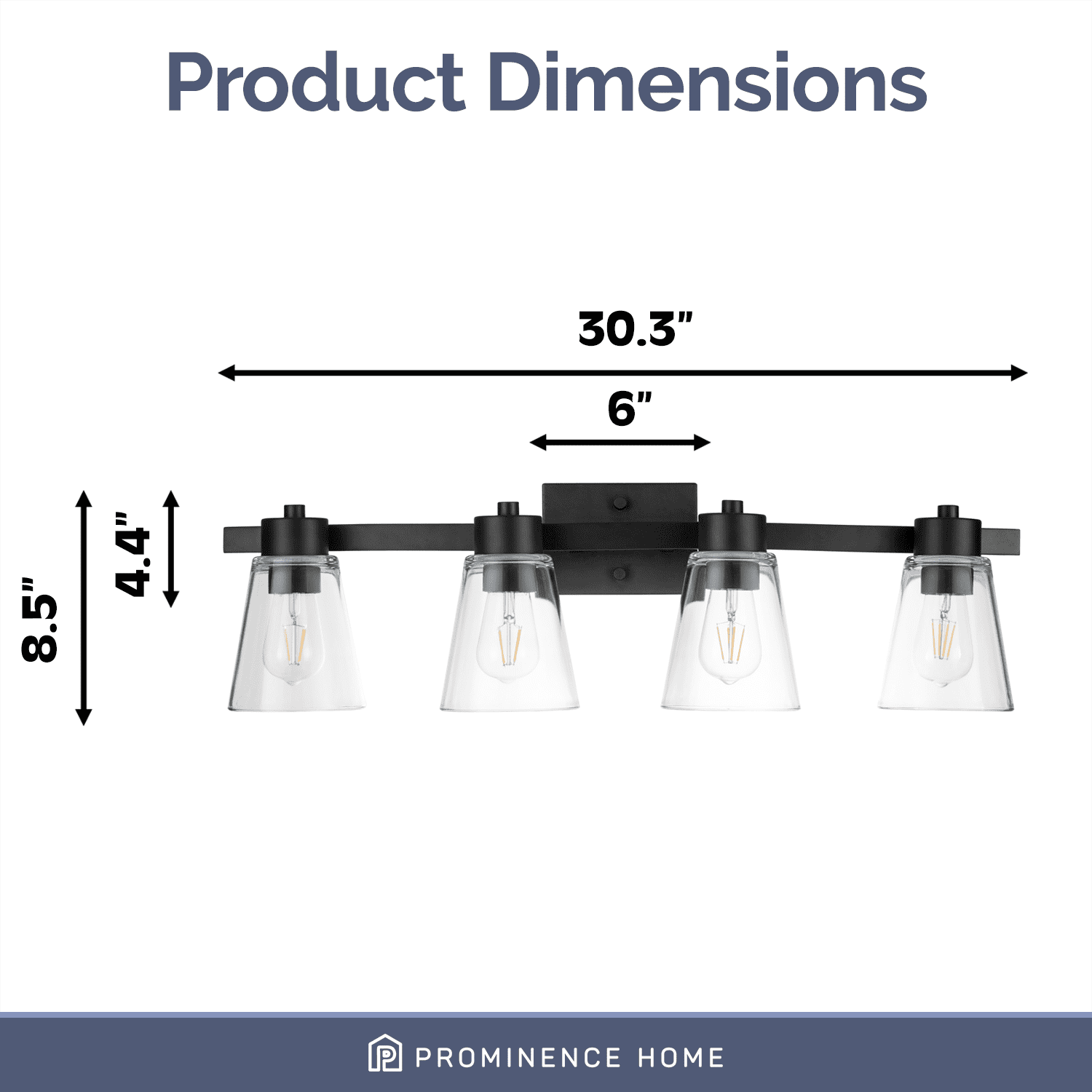 Prominence Home Fairendale 4-Light Matte Black Bathroom Vanity Light with Clear Glass Shade