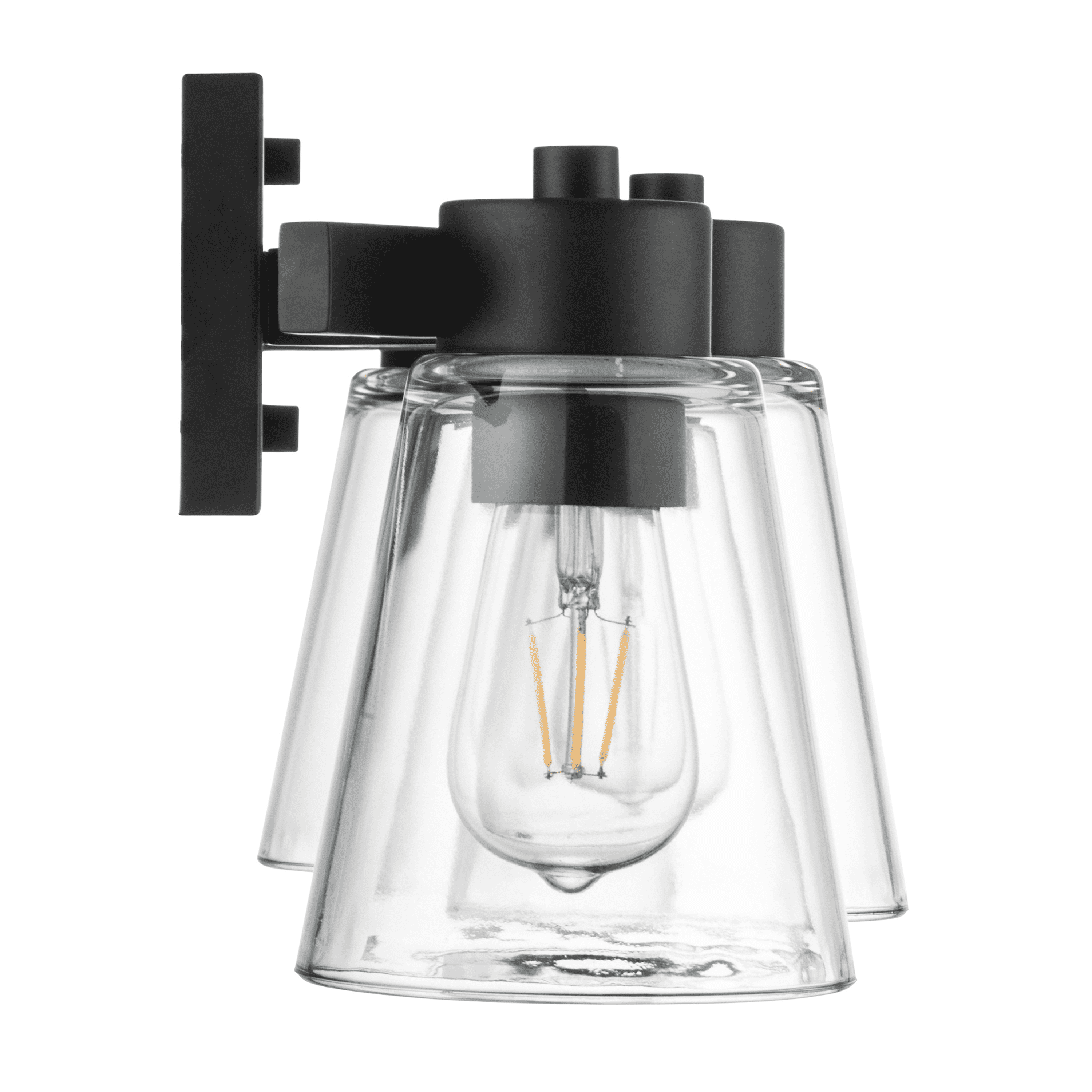 This matte black fixture with clear glass is compatible with a dimmer switch (not included), allowing you to adjust the light to fit your needs. This eye-catching light fixture is damp-rated and perfect for those high-moisture spaces. Bring modern style and beautiful illumination to your home. This fixture uses E26/Medium (Standard) bulbs (not included). The manufacturer recommends not to exceed 60w.