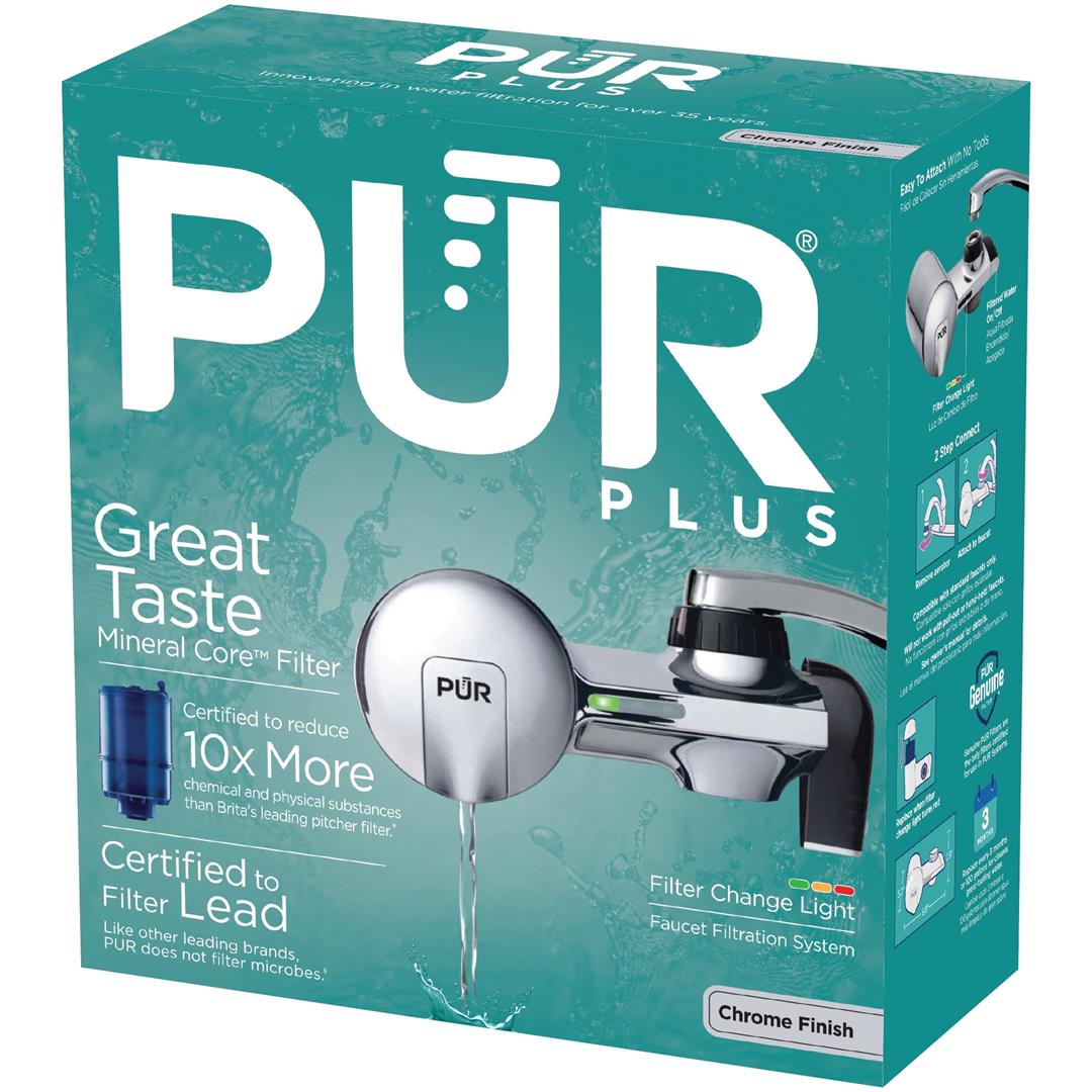 Each PUR water filter is certified to reduce mercury and certain industrial pollutants, as well as reducing chlorine (taste and odor) and more.* PUR faucet filtration systems are certified to reduce 70 contaminants, including lead, mercury, and certain pesticides.* Certified to reduce lead and 10x more contaminants than Brita’s leading pitcher filter.*,** As the #1 selling brand in faucet filtration***, the included Mineral Core filter technology filters water over natural minerals for a crisp, refreshing taste. PUR has been developing innovative technologies for superior water filtration for over 30 years.