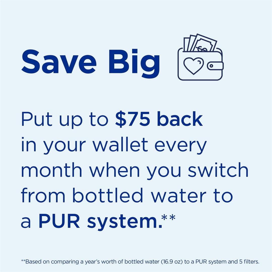Certified to reduce 70 contaminants including Lead, 10x more contaminants than Britas leading pitcher filter.*,** Easy to attach tool-free installation. Filters water over natural minerals for great taste. Filter Change Light indicator alerts you when the filter needs replacing. Easily switch to filtered mode when you want cleaner, great-tasting water. Filter provides up to 100 gallons of filtered water or 3 months of typical use. Compatible with standard faucets. Not for use with pull-out or hand-held faucets. Use only genuine PUR Filters, which are independently certified and tested. Be cautious of generic and private label brand off-brand filters. They are not tested or certified to filter the same as PUR filters. PUR filters are the only filters certified to reduce contaminants when used with PUR systems. 1 Be sure its PUR.