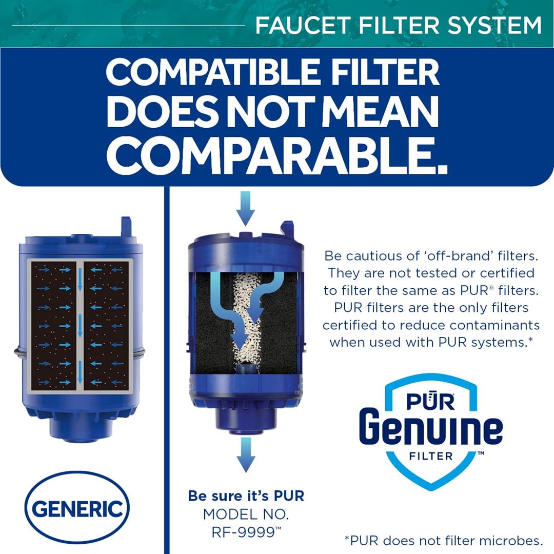 Certified to reduce 10x more chemical & physical substance removal than Britas leading pitcher filter.* The only faucet filter certified to reduce 70 contaminants including lead and microplastics. Trusted for over 35 years, PUR is the #1 selling brand in faucet filtration. Tool free installation. Compatible with standard faucets. Not for use with pull-out or hand-held faucets. Filter Change Light so you know when to change your Genuine PUR filter. Provides filtered mineral water on demand with an easy on/off switch. Superior filtration that can save you up to $30 per week. Dimensions: 6.8″ L x 5.2″ W x 2.9″ H Includes 1 PUR PLUS Faucet System (PFM410F) and 1 Genuine PUR PLUS Filter (RF9999) for 3-in-1 powerful, natural mineral filtration.