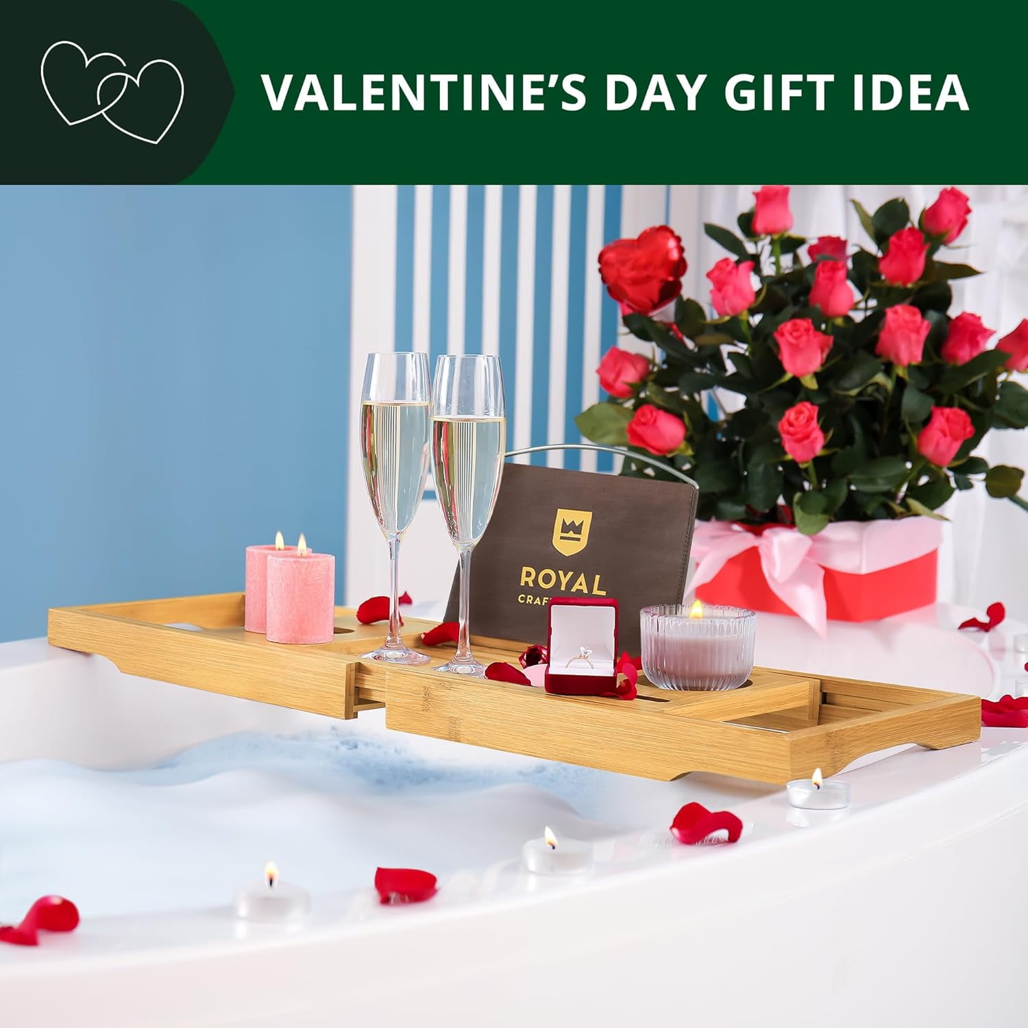 Royal Craft Wood Expandable Bamboo Bathtub Tray Caddy Bathroom Caddy Organizer for Bath Tub with Tablet, Wine Glass & Soap Holder Relaxing Spa Bath Shelf for Home Us (Natural)