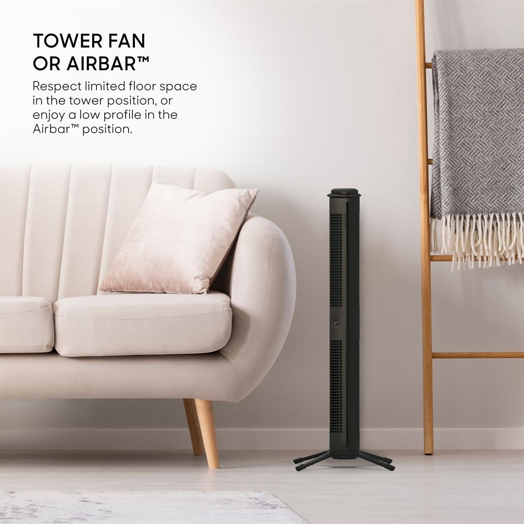 Tower Fan or Airbar Magnetic Base System 3-Speed Touch Controls Full-Range Tilt Airflow Easy & Toof-Free Assembly Remote Control Small Footprint 2-Year Warranty