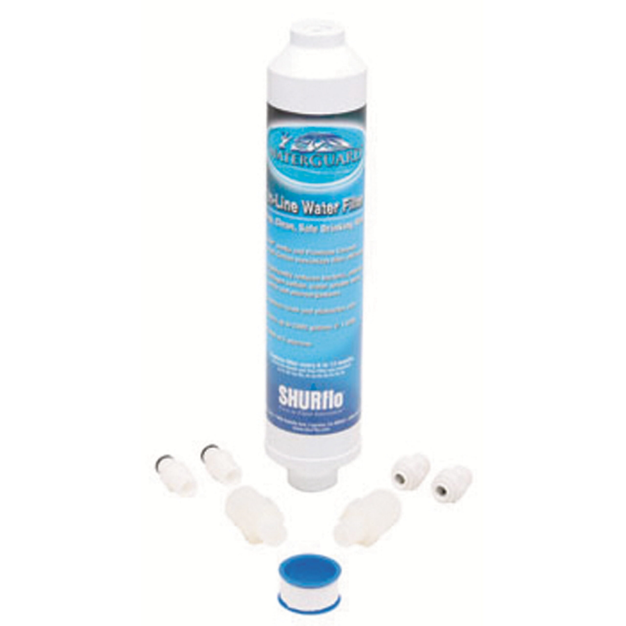 This Super Premium Two-Stage Waterguard filter replaces all SHURflo 6 and 10″ in-line filters, as well as all competitive brands. SHURflo uses only the highest quality KDF media and Coconut Shell Carbon to significantly reduce bacteria, chlorine, hydrogen sulfide, water-soluble heavy metals and microorganisms, providing you crisp, clean and safe drinking water.”