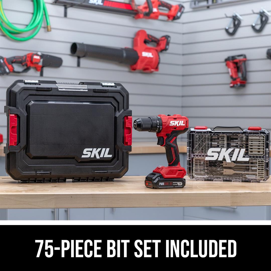 SKIL HD6280B-11 PWR CORE Brushless 20V Hammer Drill Kit, 75 Piece Drill and Drive Bit Set, 2.0Ah Battery and Charger