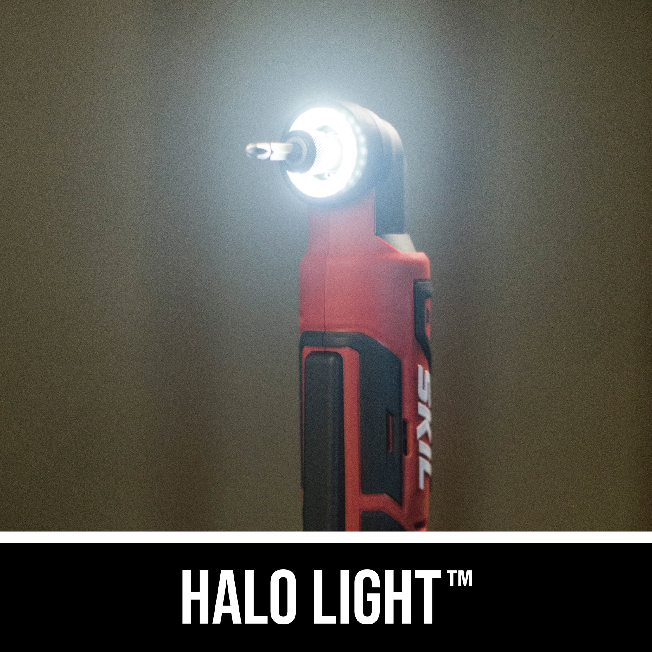 COMPACT SIZE: The digital brushless motor provides compact, lightweight power. LONGER RUN TIME & BATTERY LIFE: Industry leading battery technology wraps each cell with cooling material to keep the battery powering on for 25% longer run time and 2X battery life. POWER ON THE GO: Plug in to the batterys USB port CHARGES IN 5 MINUTES: PWRJUMP charges the battery from 0% to 25% in just 5 minutes, or 100% battery in 45 minutes. VARIABLE SPEED PADDLE: The extended paddle of this 90 degree drill allows you to operate the tool from multiple grip positions, all with precise speed from start to finish. BRIGHT HALO LIGHT: Get 5X more light than common LEDs. Light up your workspace and reduce shadows with pre-light and after-glow.