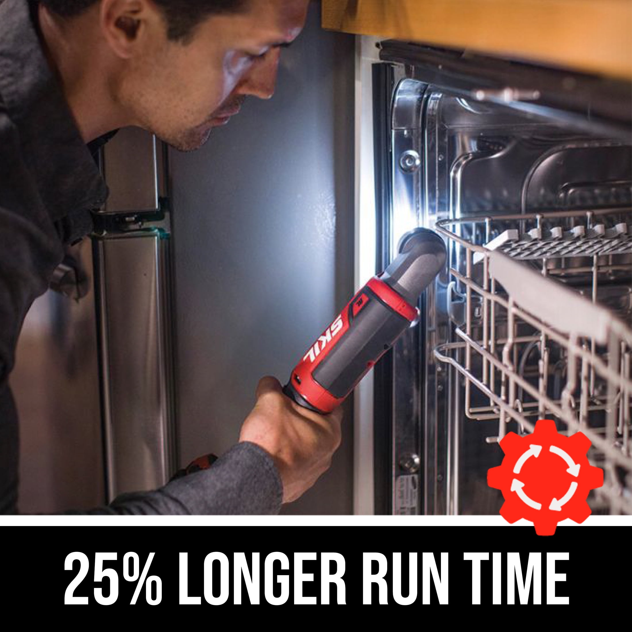 Make challenging projects a breeze with this impact driver set from SKIL that includes a Brushless 12V Hex Right Angle Impact Driver, a PWR CORE 2.0 Ah Lithium Battery with PWRAssist Mobile Charging, and a PWR JUMP Charger. The cordless impact drivers compact size and 90-degree drill head is easy to maneuver in hard-to-reach fastening applications, and the extended paddle allows you to operate the tool at various grip points. Take on the toughest materials with this tool.