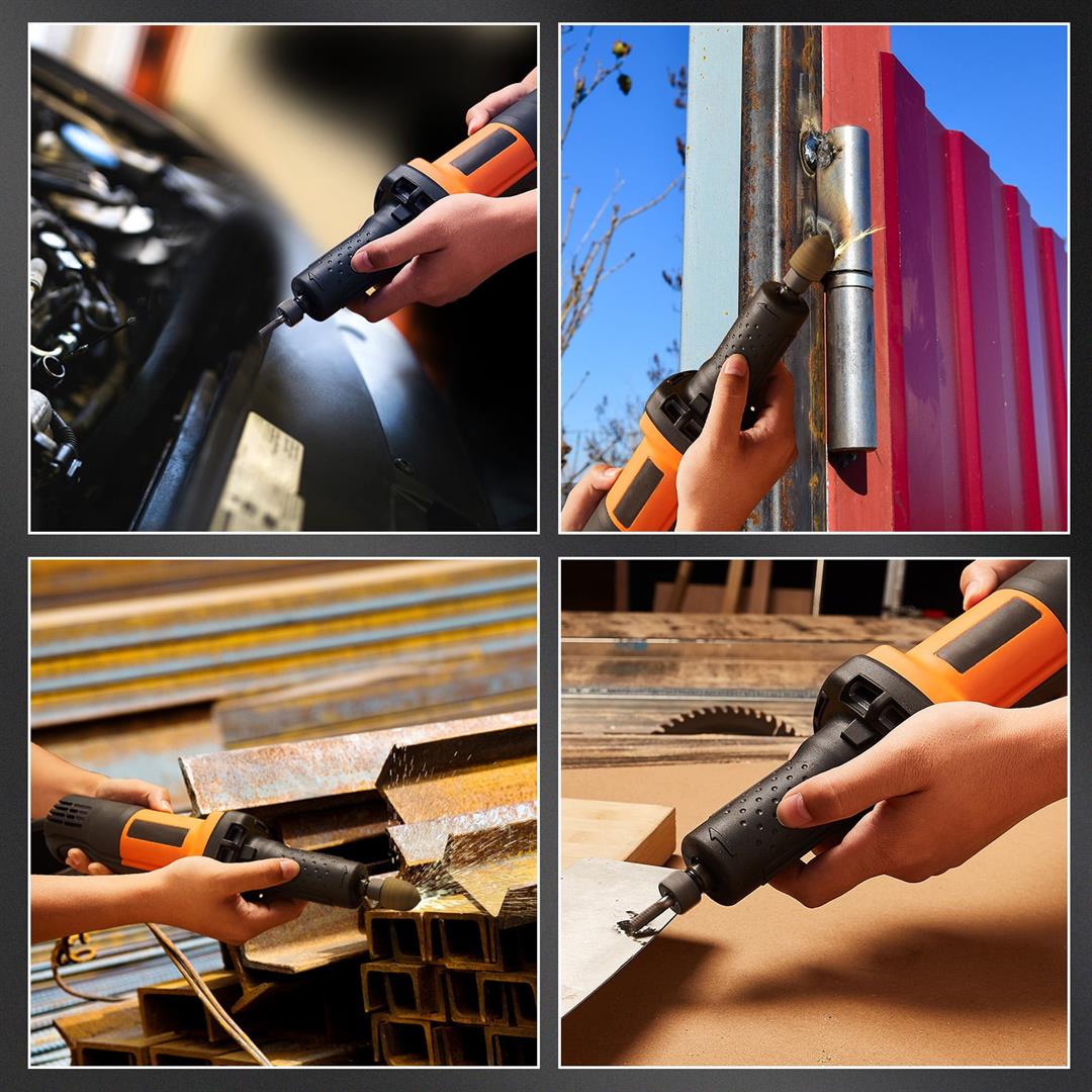 Unleash Your Power: The SKYSHALO mold grinder uses an industrial grade motor with excellent torque, faster output, and durable design. It weighs only 1.9 kilograms and is convenient and flexible to use. It can perform medium to heavy load processing tasks in professional environments. Adjustable Speed: There are 6 speed settings, ranging from 7000 to 3000 rpm, making it easy to adapt to any professional task. A lower speed is very suitable for slow grinding and rust removal, while a higher speed is very suitable for material removal and can meet the needs of fine or rough machining. Multifunctional: Equipped with 1/4 “and 1/8” chucks, compatible with various accessories. Allowing it to undergo rust removal, polishing, polishing, grinding, milling, carving, and sharpening is a truly multitasking tool! Quiet Operation: Unlike air mold grinders that require a compressor and produce loud noise, this electric mold grinder operates quietly. Its silent operation and high-performance motor make it an excellent choice for both professional and household use. Humanized Design: The circulating ventilation system quickly dissipates heat, and the “safety switch” ensures safe operation. The soft handle makes it comfortable to grip, providing you with a smoother and quieter experience. Buy today and bid farewell to the troubles of grinding, polishing, and cutting!