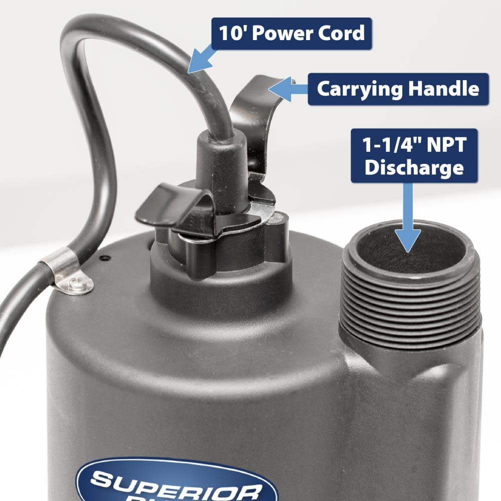 Superior Pump 91250, 1/4 HP, 1.5 Amps, 120 V, Black Corded Electric Water Sump Pump