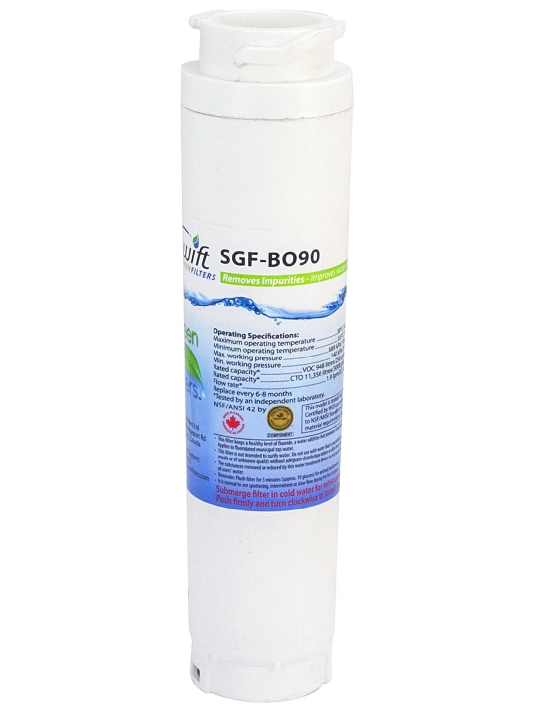 Swift Green Filters SGF-BO90 Compatible for 644845, 740570, BORPLFTR10, 9000194412, 9000077104 Refrigerator water Filter most compatible best in class and technology Internationally Certified .Swift Green Filters will deliver fresh, clean, and great tasting water and ice cubes. Designed with technology using recycled coconut shells that create an internal carbon filter with up to 50% more filtering pores. The result is safe and clean drinking water that has eliminated contaminants and impurities that may have been present.