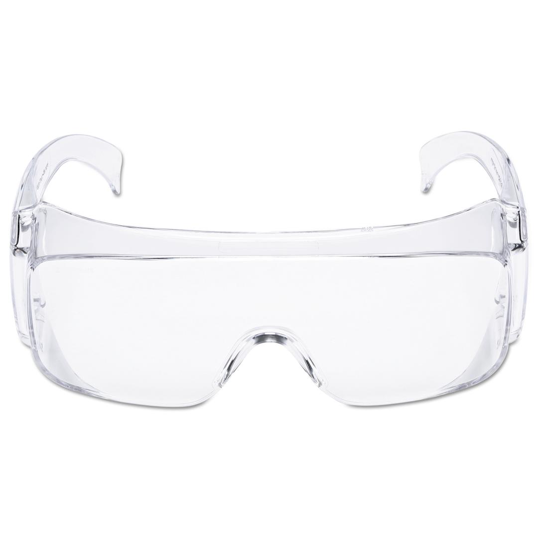 Economical protection ideal for visitors and whole crews. Clear lens and frameless design fits over most personal prescription eyewear. Polycarbonate lenses absorb 99.9% UV. Wraparound design Wall-mountable dispenser box for easy access. Style: Frameless Frame Color: Clear Frame Material: Polycarbonate Lens Material: Polycarbonate.