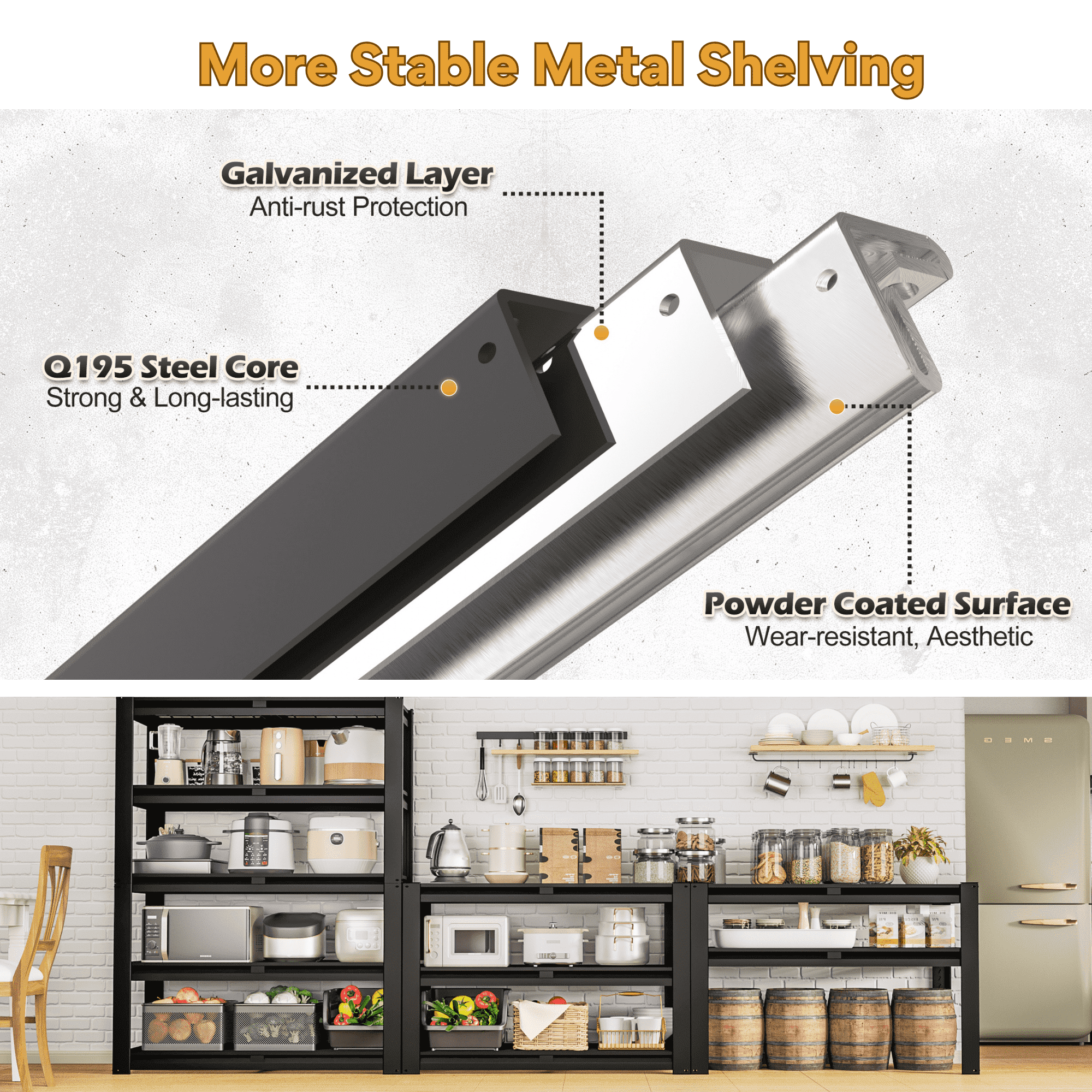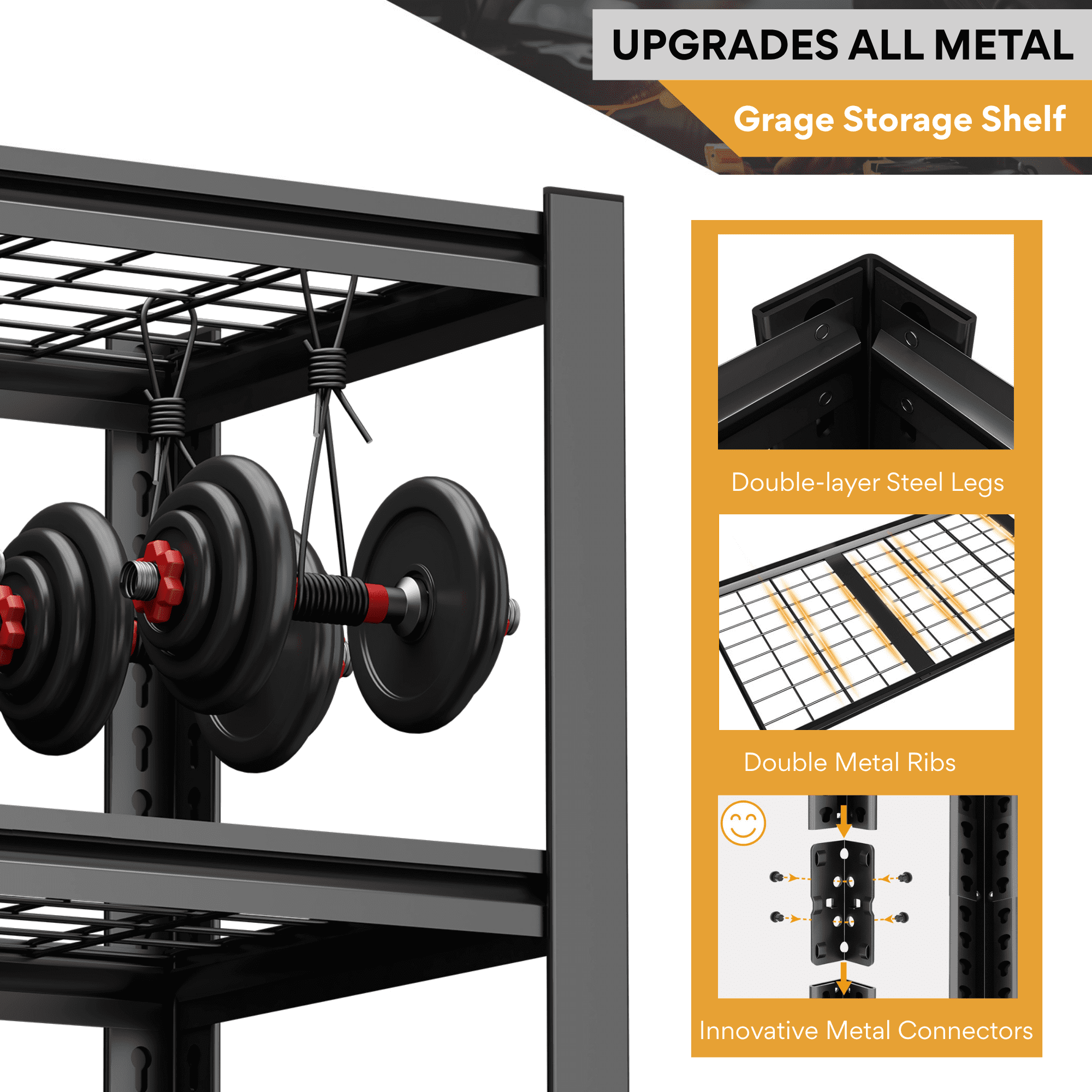 Trumanpick Heavy Duty Metal Garage Shelving Unitsyour ultimate solution for maximizing storage space with elegance and strength! Due to the storage shelves’ high-quality steel, thickened wire shelves, extra support rods, feet, and innovative connectors, this garage storage shelves is able to hold up to 2200 pounds, making it stable and durable. Three different sizes for the shelving unit provides you with great storage space for storing heavy items. Unlike MDF board shelving, wire industrial shelving is breathable and less prone to moisture buildup, making it suitable for garages, warehouses, basements, storage rooms, laundry rooms, kitchens, and other damp spaces. The adjustable shelving rack is height-adjustable and free combination, you can build your corner storage space by DIY, or build a workstation with storage and operation in one. Installation of the utility shelf is very easy and takes only 10 minutes to complete.Elevate your organization game today!