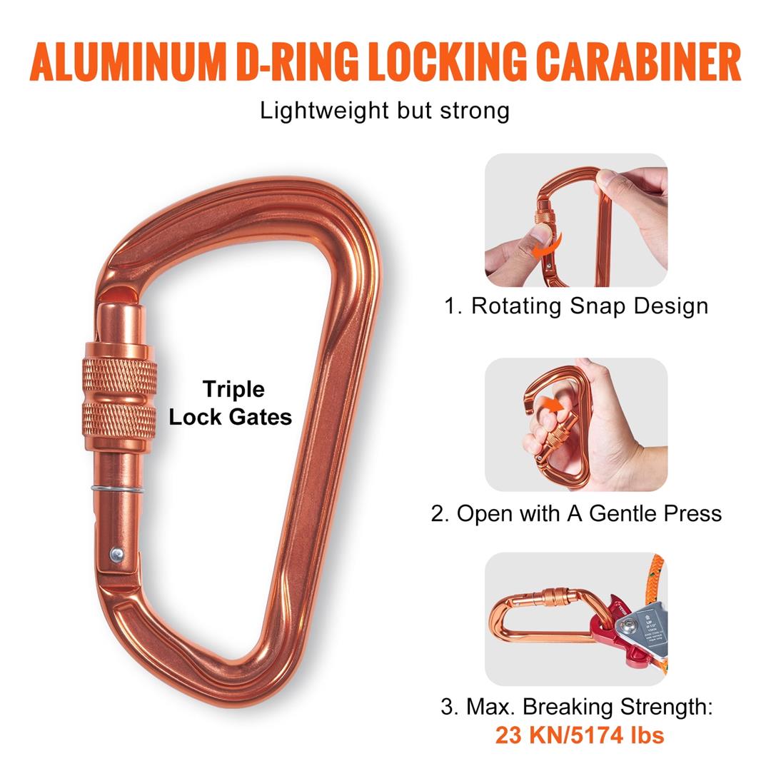 Climb with Confidence: Secure your tree climbing work at heights with the VEVOR 8 ft steel-core flipline. This steel rope boasts a durable 0.5” diameter and a robust 25 kn breaking strength, compliance with ANSI standards, ensuring your fall protection. A must-have tool for tree climbers. Thickened Steel Core: Crafted from high-strength polyester fibers and featuring a robust 7×19 stainless steel wire core, this flip line for tree climbing offers superior resistance to cuts and wear. Not only that, but its exceptional rigidity enhances stability, making flipping up the tree a breeze. Extra Tool Lanyard: Safeguard your tools with the included tool lanyard. This practical addition ensures easy access to your tools while working. By securely attaching them to your wrist or harness, the lanyard reduces the risk of accidental drops, enhancing safety on the job. Steel Snap Hook & Rope Grab: The arborist flipline comes equipped with a strong alloy steel swivel snap with 23 KN/5174 lbs break strength. Adjusting the lanyard is a breeze, thanks to the flip-top knots. Additionally, the lanyard features an aluminum alloy rope grabber with a break strength of 15 KN/3372 lbs, which makes it easy to move by freely adjusting the rope. Triple Lock Carabiner: Our carabiner boasts a breaking strength of 23 KN/5174 lbs, providing stability and support during tree climbing. Its strong lock mechanism allows for instant locking and easy one-handed opening. The keylock nose design prevents snagging, while the ergonomic shape ensures a comfortable grip.