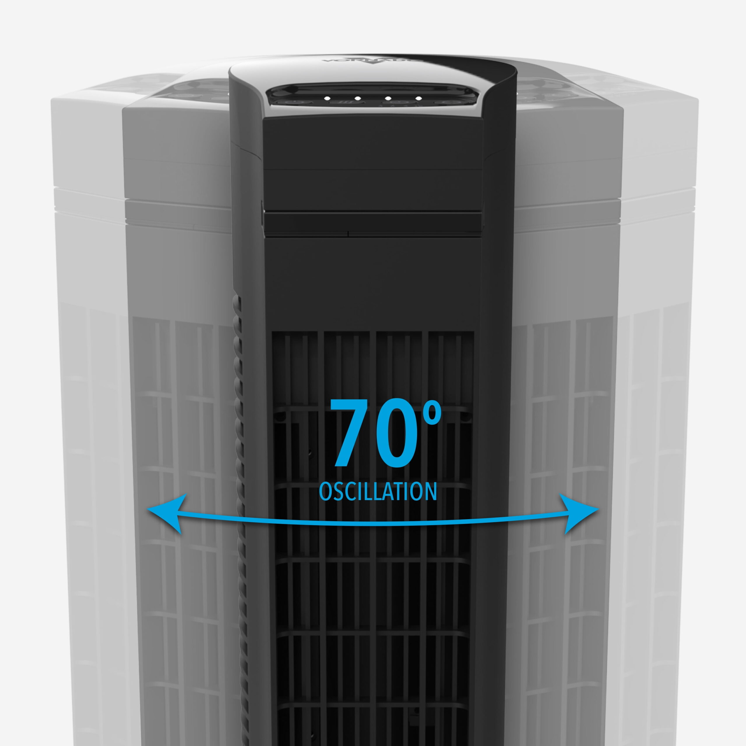 A 40-inch tower circulator with options. Offering you the choice of Vornados signature powerful Whole Room Air Circulation or Oscillation On-Demand. The Vornado 4T gives you the flexibility to circulate the air how you want in nearly any space. Your comfort is under control with 4 speed settings and an energy-saving 3-12 hour timer. The included remote controls your comfort from across the room. It then conveniently and stylishly stows away by magnetically attaching to the head of the unit.