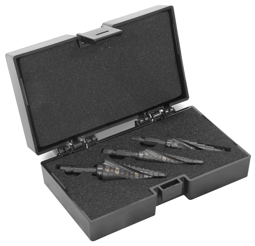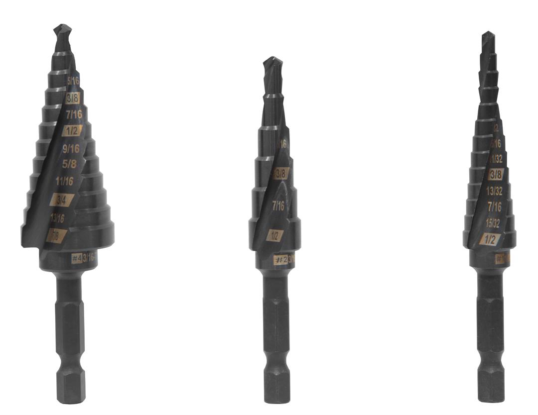 Titanium aluminium nitride (TiAIN) coating maximizes protection for a longer lifespan Impact-rated heavy-duty construction perfect for impact drivers, drill presses, and more Includes a #1 drill bit with 13 steps ranging from 1/8 to 1/2 inch in diameter, a #2 drill bit with 6 steps ranging from 3/16 to 1/2 inches, and a #4 drill bit with 12 steps ranging from 3/16 to 7/8 inches Hard-shelled carrying case with protective foam padding provides the perfect solution for storage and transportation