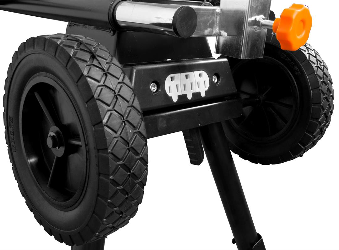 Universal design fits nearly every miter saw on the market, including all WEN miter saws Collapsible rolling stand features two 8-inch never-flat wheels for simple transportation and storage Sturdy 1-1/2-inch diameter steel frame elevates your miter saw 33 inches off the ground Extend the support arms anywhere from 32 to 79 inches to support boards up to 10.5 feet long Includes three onboard 15A 120V outlets, two height adjustable rollers, quick-release brackets, two table extensions, a powder-coated finish and a two-year warranty